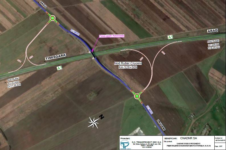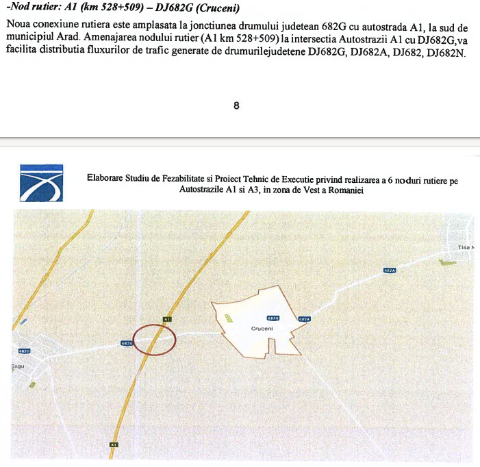 „Nod rutier la Cruceni, la joncţiunea DJ682G cu Al, la sud de municipiul Arad. Va facilita distribuția traficului generat de: DJ682G, DJ682A, DJ682, DJ682N”, spune ministrul Transporturilor.