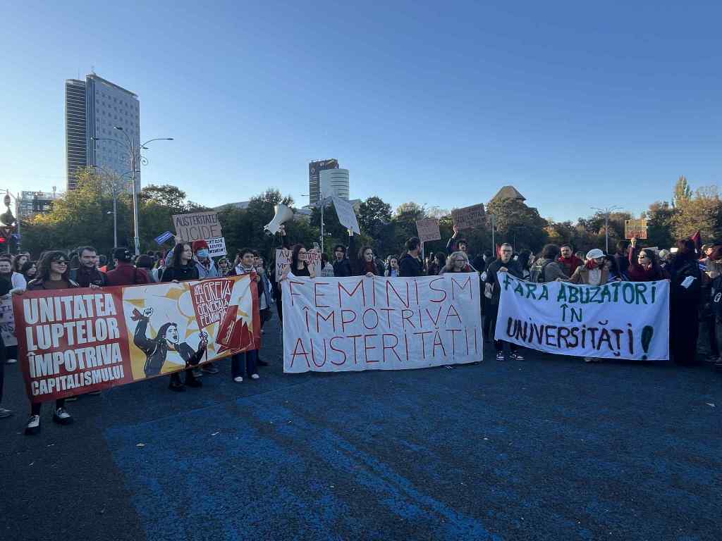 În Capitală, aproximativ 1.000 de persoane s-au adunat în Piața Universității, de unde la ora 16:00 au plecat în marș spre Piața Victoriei. Participanții au scandat: „1,2,3,4 – doborâm patriarhatul! 5,6,7,8 – nedreptatea să ia foc!” și „Suntem toate solidare, agresorii n-au scăpare”, între altele.