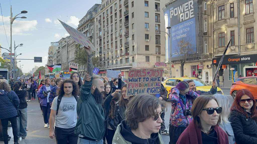La manifestație au fost prezenți și protestatari pro-Palestina, care au atras atenția asupra situației umanitare din Fâșia Gaza.
