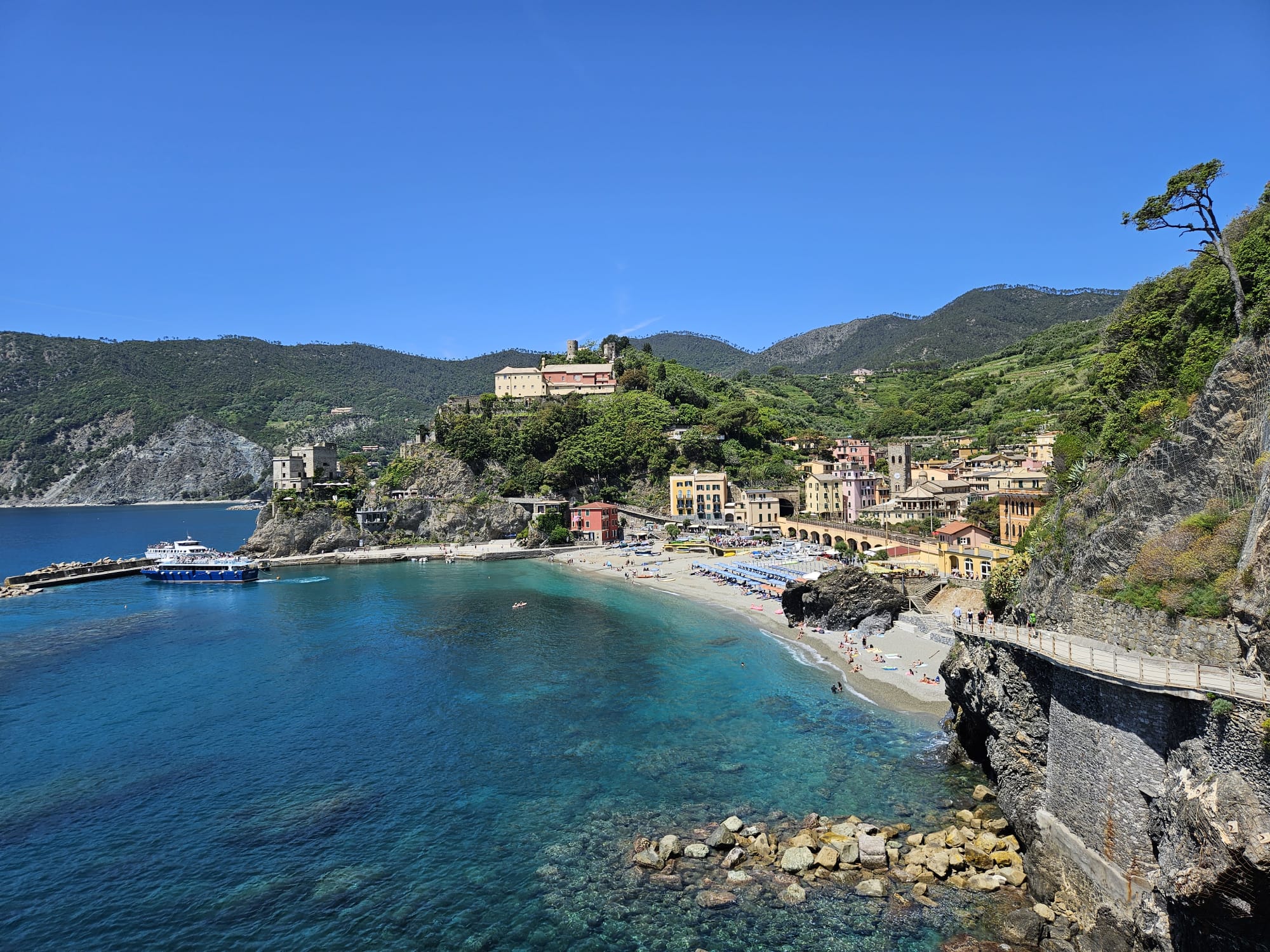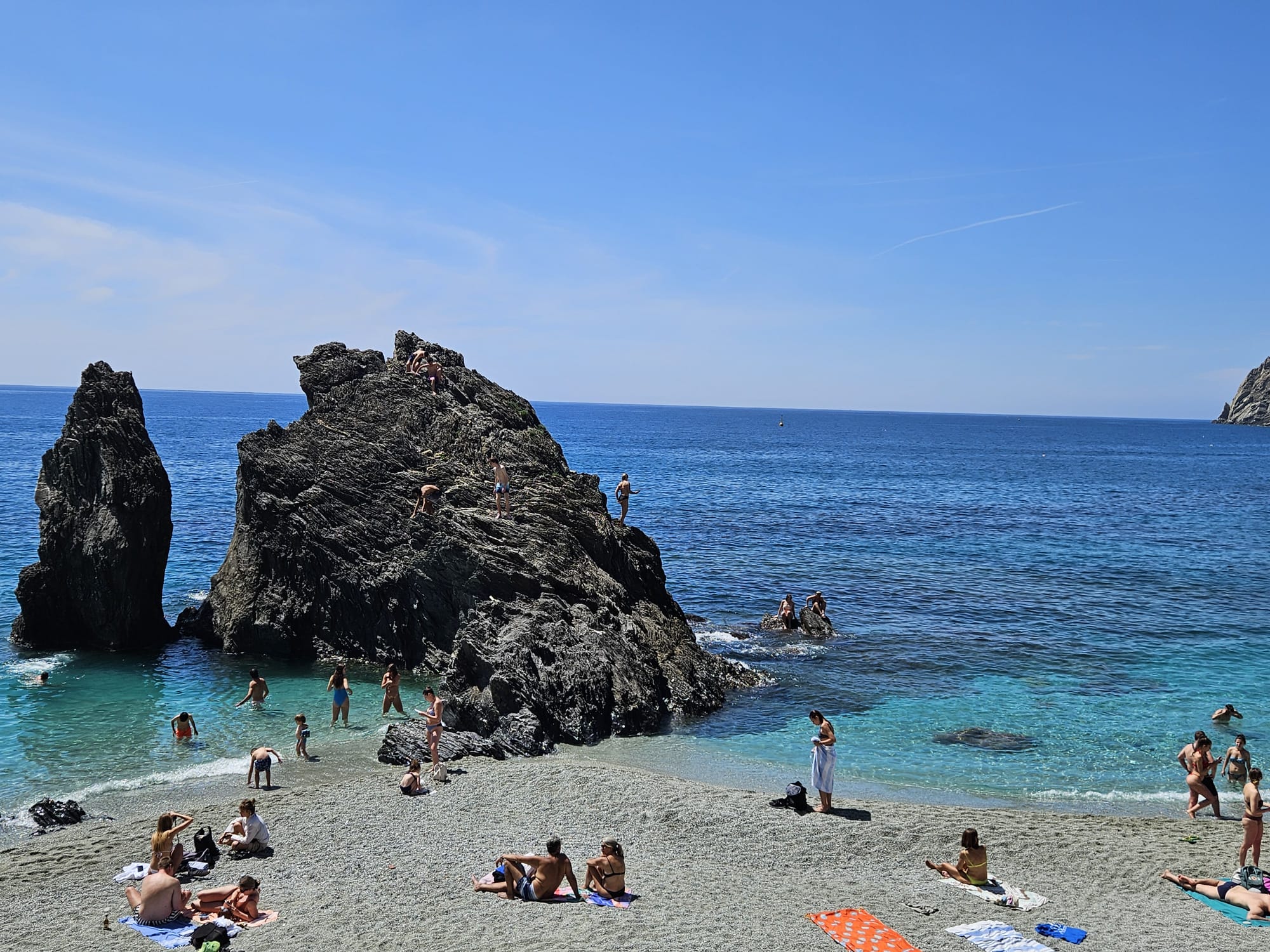 Recomandarea pentru Cinque Terre este să începeți plimbarea din Monterosso Al Mare. Acolo se află și o plajă cu nisip. Încă din luna mai temperatura apei este bună: peste 18,5 grade Celsius.