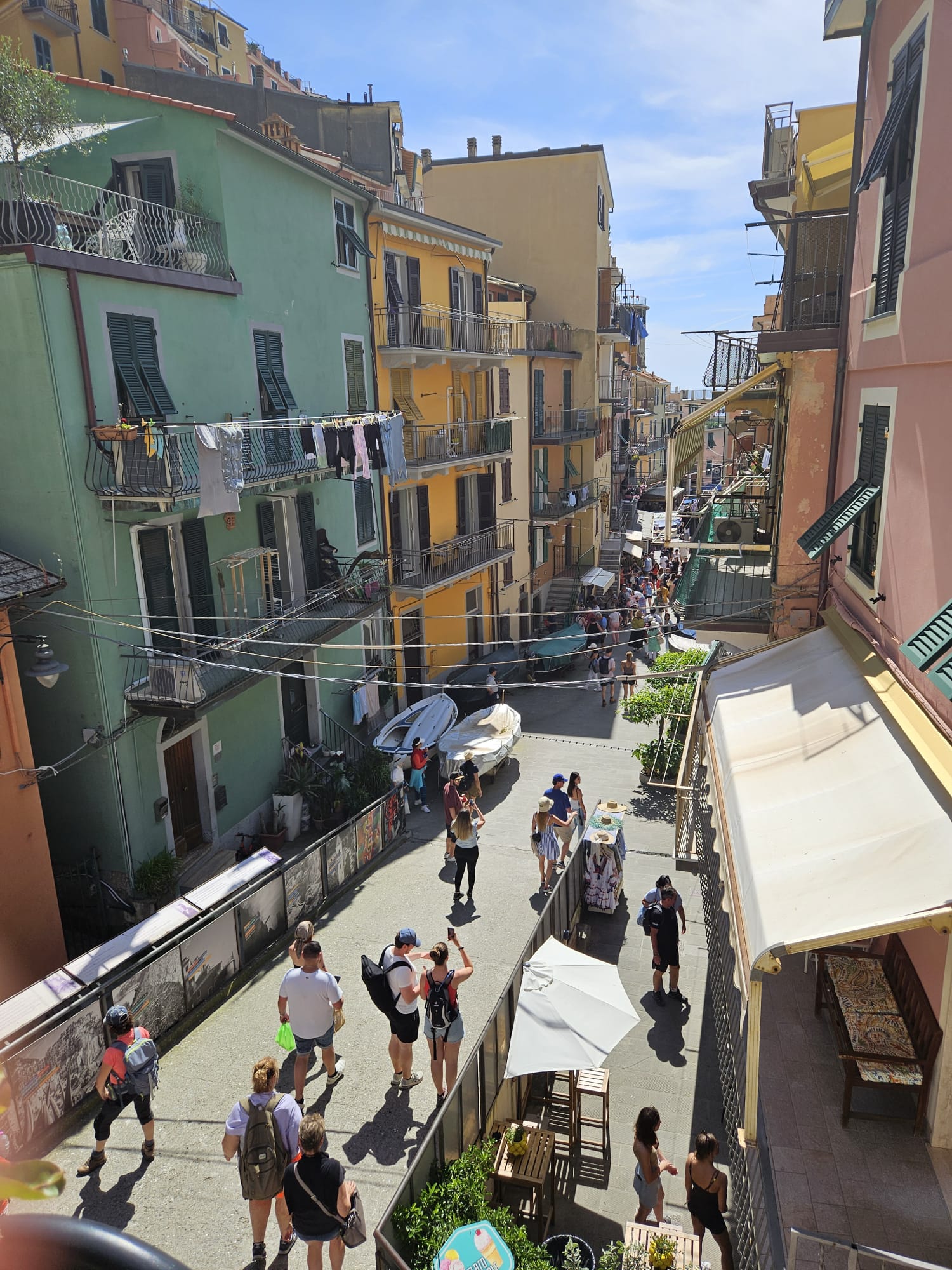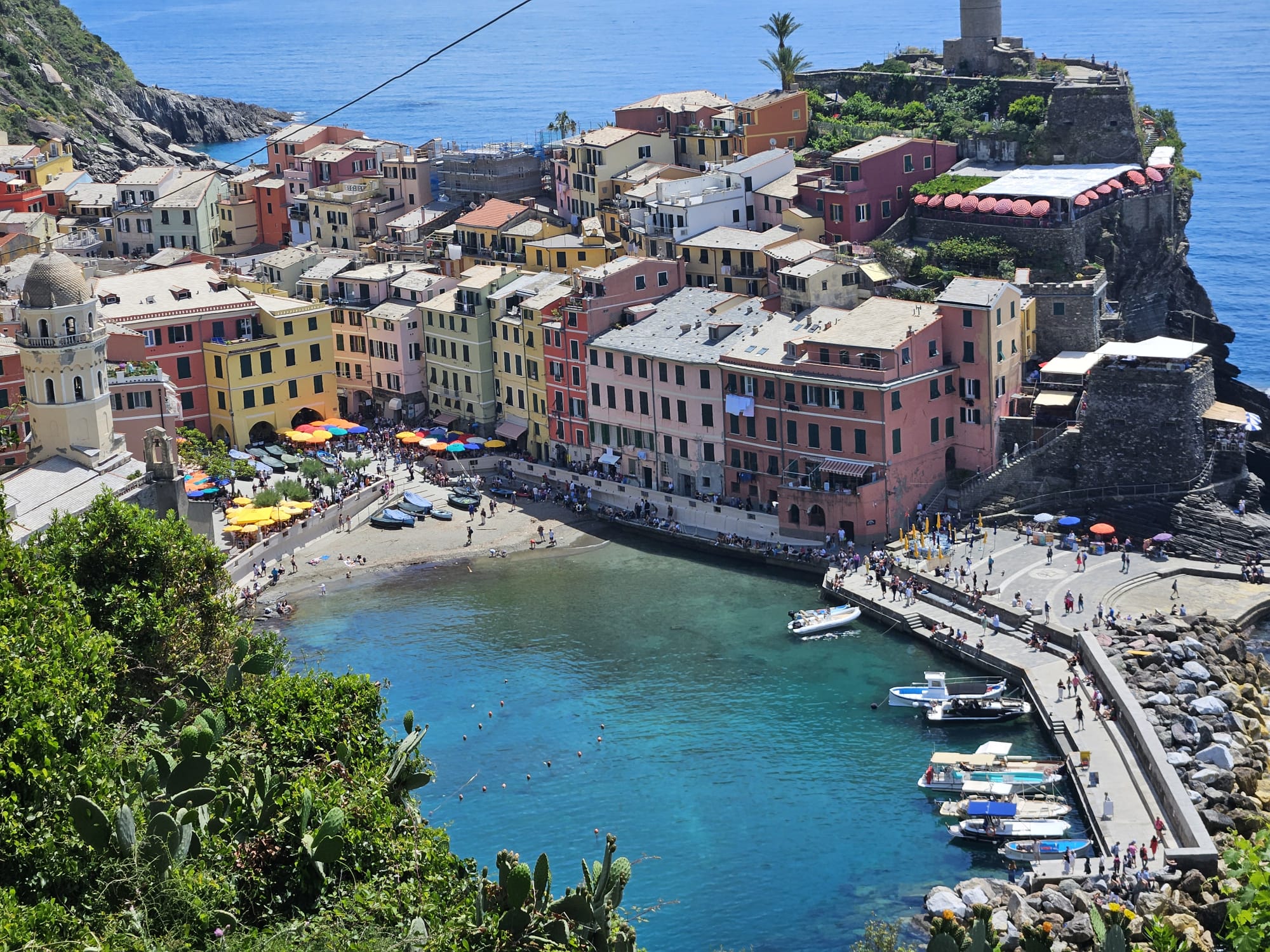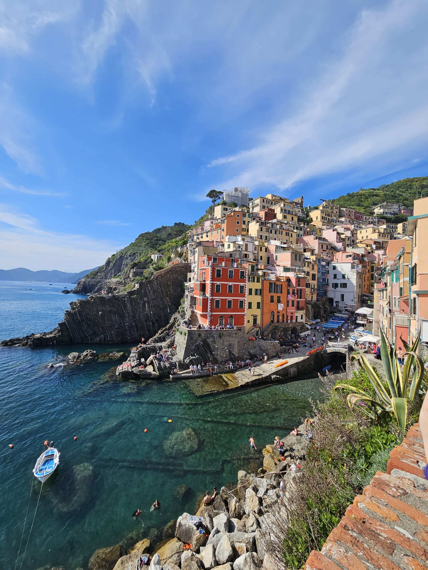 Marea o vezi de sus, iar de acolo vei observa și următoare localitate (Manarola), dar pentru asta trebuie să cobori spre gară și să mergi cu trenul alte câteva minute.