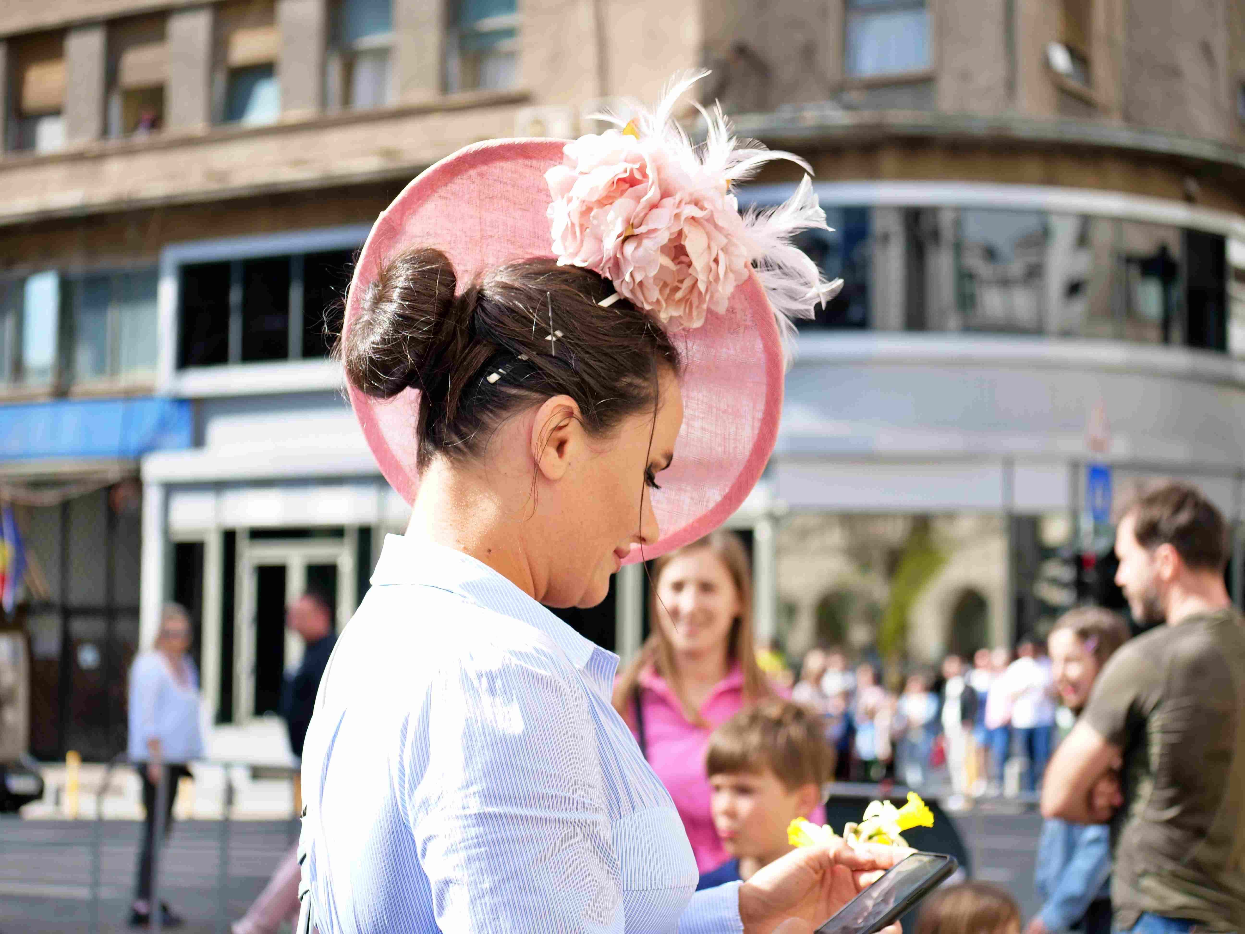 Trecătorii au făcut selfie-uri cu modelele, le-au probat pălăriile și s-au bucurat împreună cu organizatorii de vremea bună.