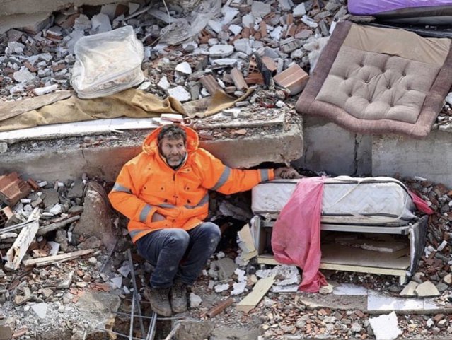 Fotograf de 40 de ani, dintre care 15 la AFP, Adem Altan făcea poze în faţa unei clădiri prăbuşite din Kahramanmaras, epicentrul turcesc al cutremurului care a ucis peste 20.000 de persoane între Turcia şi Siria, când a văzut un bărbat aşezat printre dărâmături.
