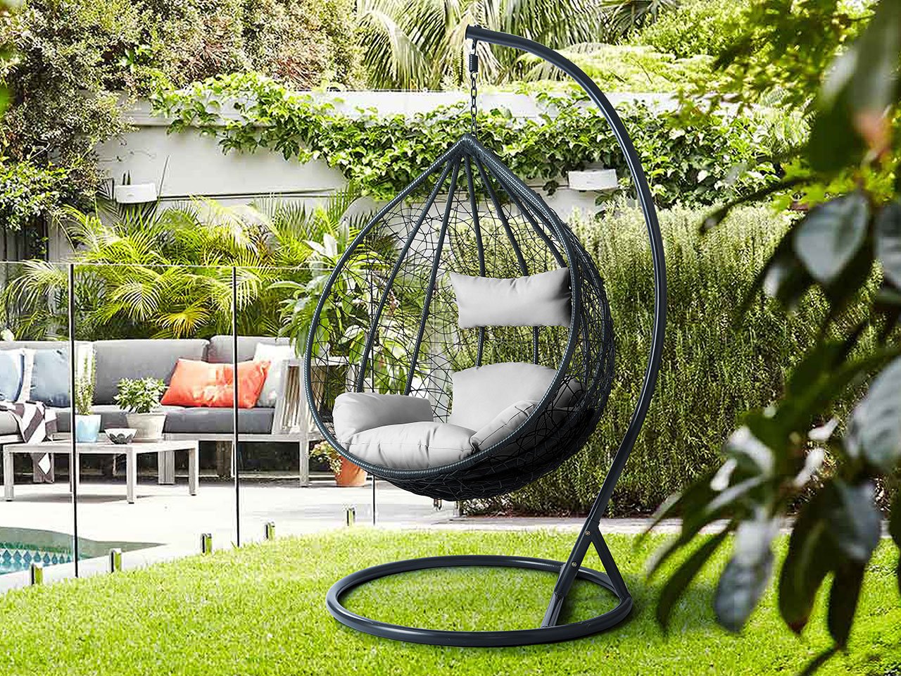 O capacitate de încărcare de până la 160 de kilograme indică faptul că un fotoliu suspendat sau un scaun suspendat este potrivit și pentru adulți. Există modele atât pentru un living mare, precum și modele rezistente la intemperii pentru grădini și balcoane. Cel mai bun produs este potrivit pentru utilizare în interior și exterior. Acordă atenție acestui criteriu înainte de a cumpăra. Deoarece majoritatea pernelor pentru fotoliile sau scaunele suspendate sunt fabricate din poliester, le poți spăla aproape pe toate în mașina de spălat. Când vine vorba de material, se poate spune că în general, țesătura este deosebit de moale și confortabilă, chiar și fără perne. Orice tip de răchită sau plasă, fie ratan, polirattan sau oțel, este căptușit pentru o potrivire confortabilă.