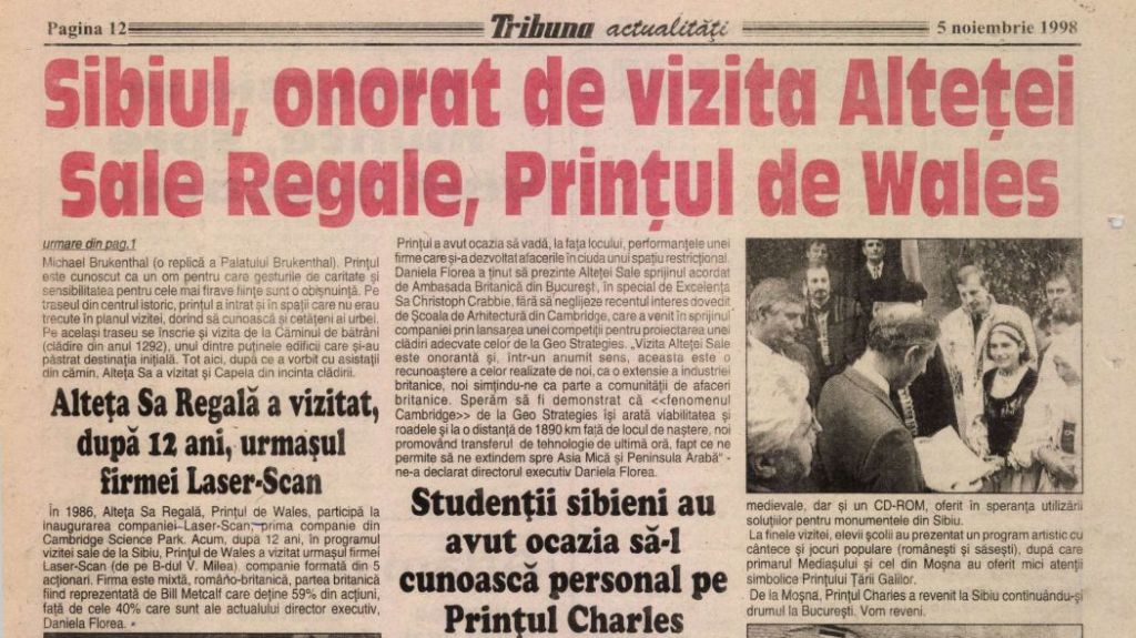 Ziarul Tribuna din Sibiu a descris pe o pagină întreaga vizita în județ, în numărul din 5 noiembrie 1998, iar un articol cu titlul „Moșna – un spațiu mirific” descria vizita Prințului de Wales la cetate și apoi la școală.