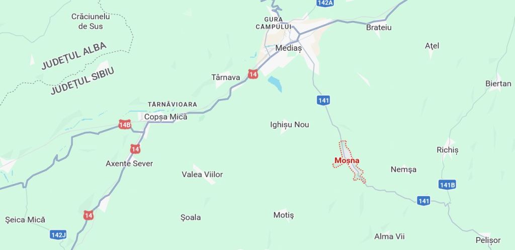 Moșna se află la 10 km de Mediaș și la 46 de km de Sighișoara, într-o zonă cu dealuri frumoase și cu viță de vie. Comuna din podișul Târnavelor are 3.300 de locuitori, dintre care 80% sunt români, însă la recensământul de acum 4 ani datele au arătat că locuiesc și 51 de sași, un număr mare în comparație cu alte comune din zona Sighișoara-Mediaș, unde zeci de sate nu mai au nici măcar un sas printre locuitori. În ungurește satului i se spune Szasz-Muszna (Moșna săsească).