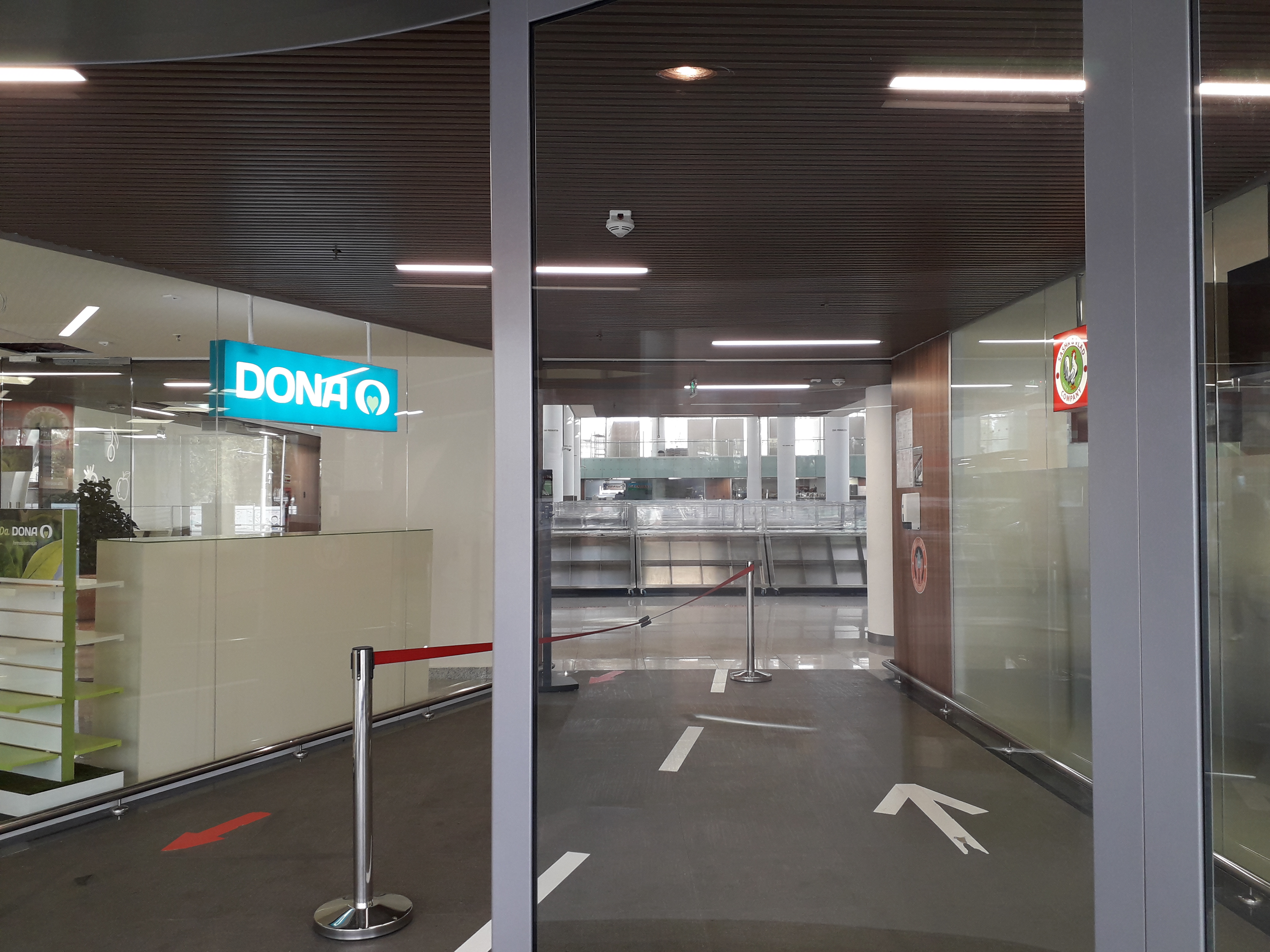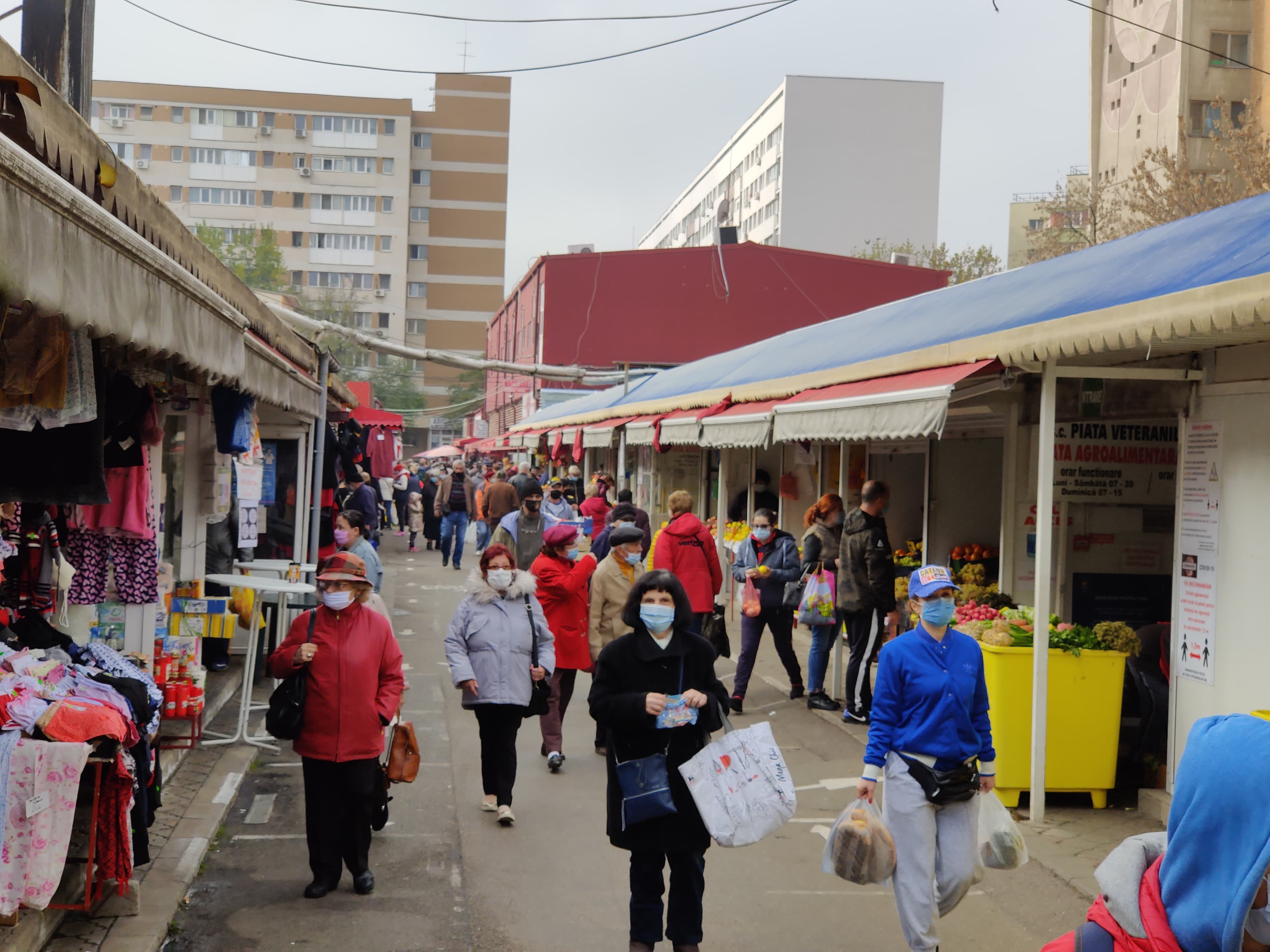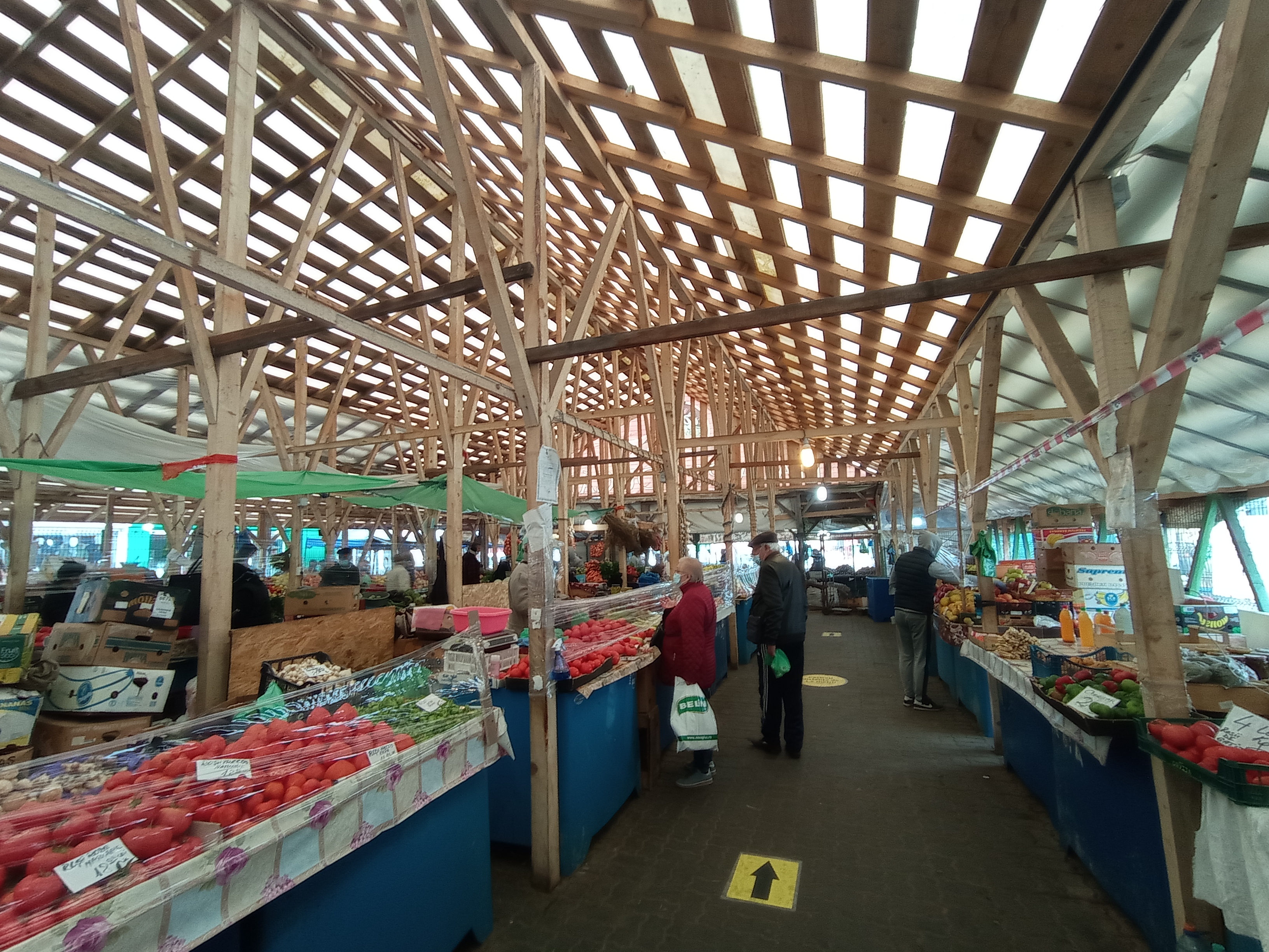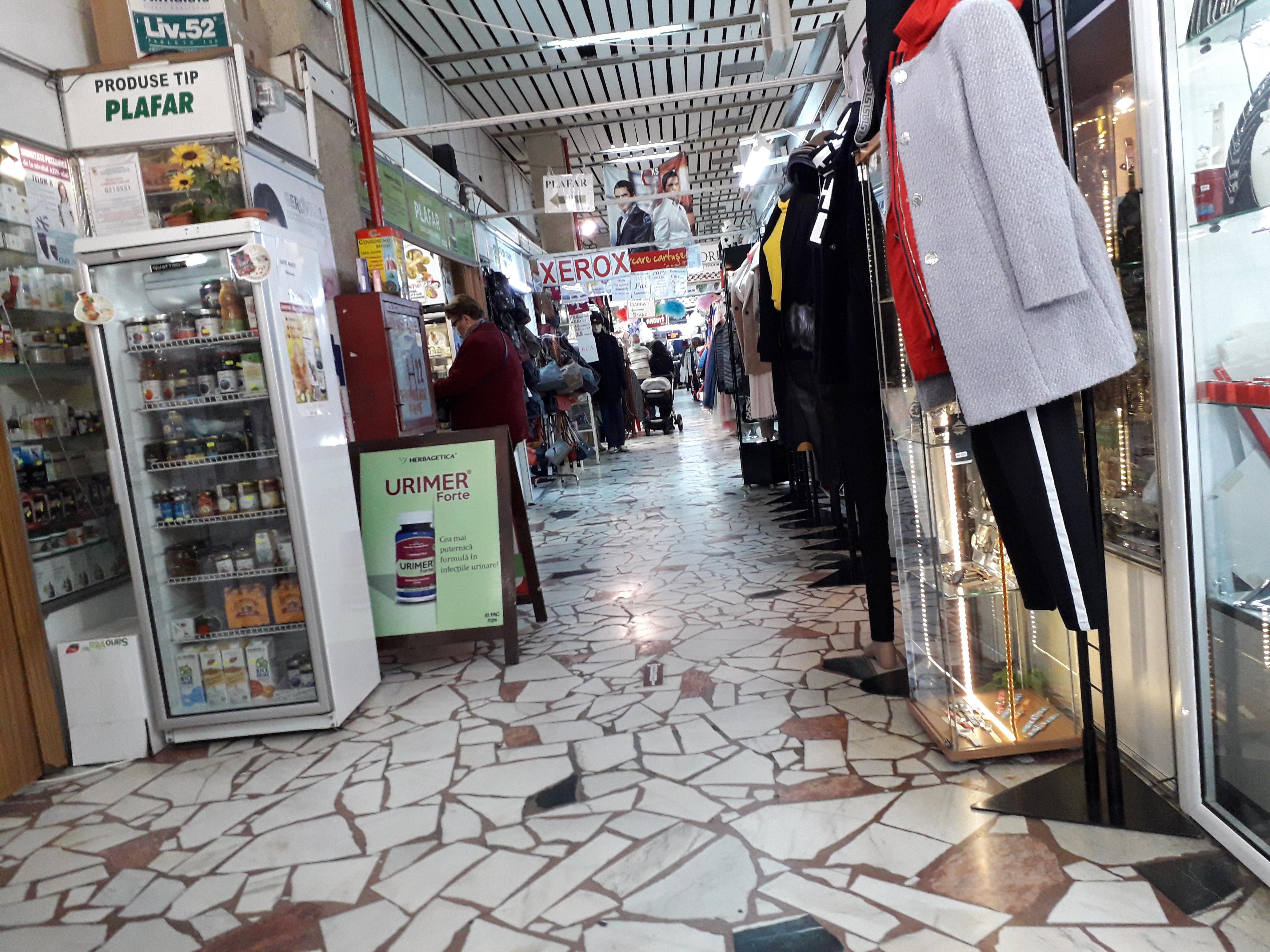 Jumătatea de piață care era în interior e închisă publicului, ramând doar tarabele exterioare și magazinele in sine din complex. Multa lume chiar și afara.