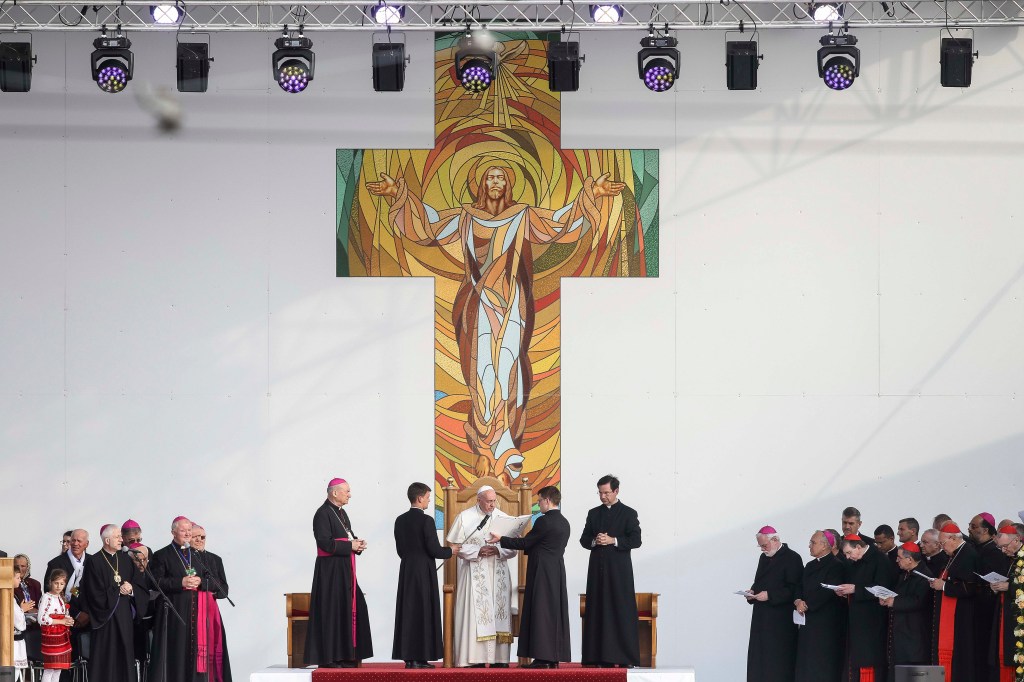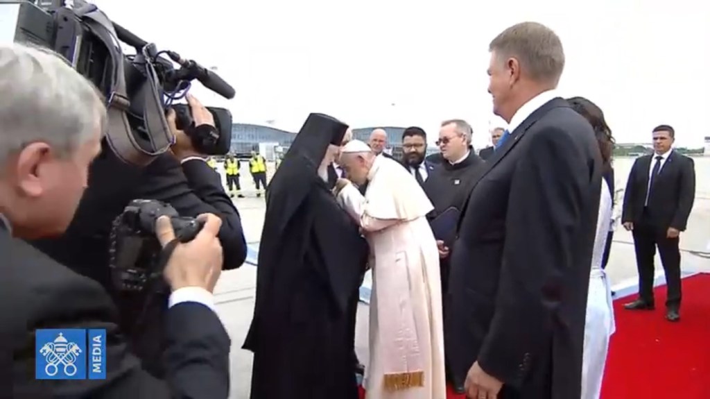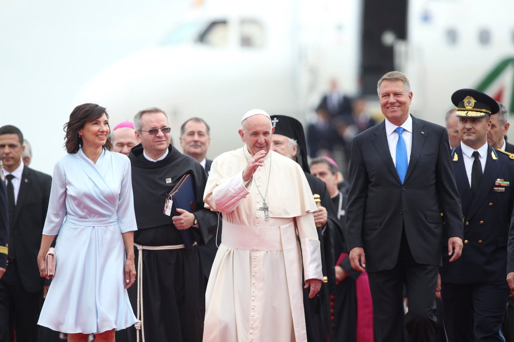 Sfântul Părinte a fost primit mai întâi la Palatul Cotroceni, sediul Administraţiei Prezidenţiale, unde a avut şi două întâlniri cu preşedintele Klaus Iohannis şi cu premierul Viorica Dăncilă. În deschiderea ceremoniei, Papa Francisc a vorbit despre emigraţie, a salutat libertatea religioasă şi a condamnat ororile regimului comunist. Motto-ul „Să mergem împreună” trimite la strigătul „Unitate! Unitate!” al mulţimii de credincioşi care participau, în anul 1999, la vizita papei Ioan Paul al II-lea în ţara noastră.