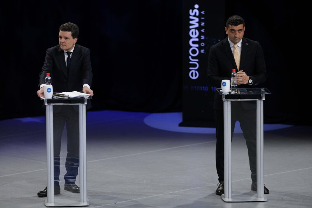 George Simion și Nicușor Dan, la dezbaterea prezidențială de la Euronews Foto: Inquam Photos / Malina Norocea