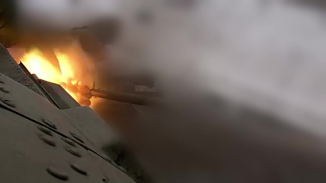 Elicopter Mi-28nm al Rusiei, în timp ce lansează rachete împotriva soldaților și blindatelor Forțelor Armate ucrainene, în zona de frontieră a regiunii Kursk, 3 martie 2025.