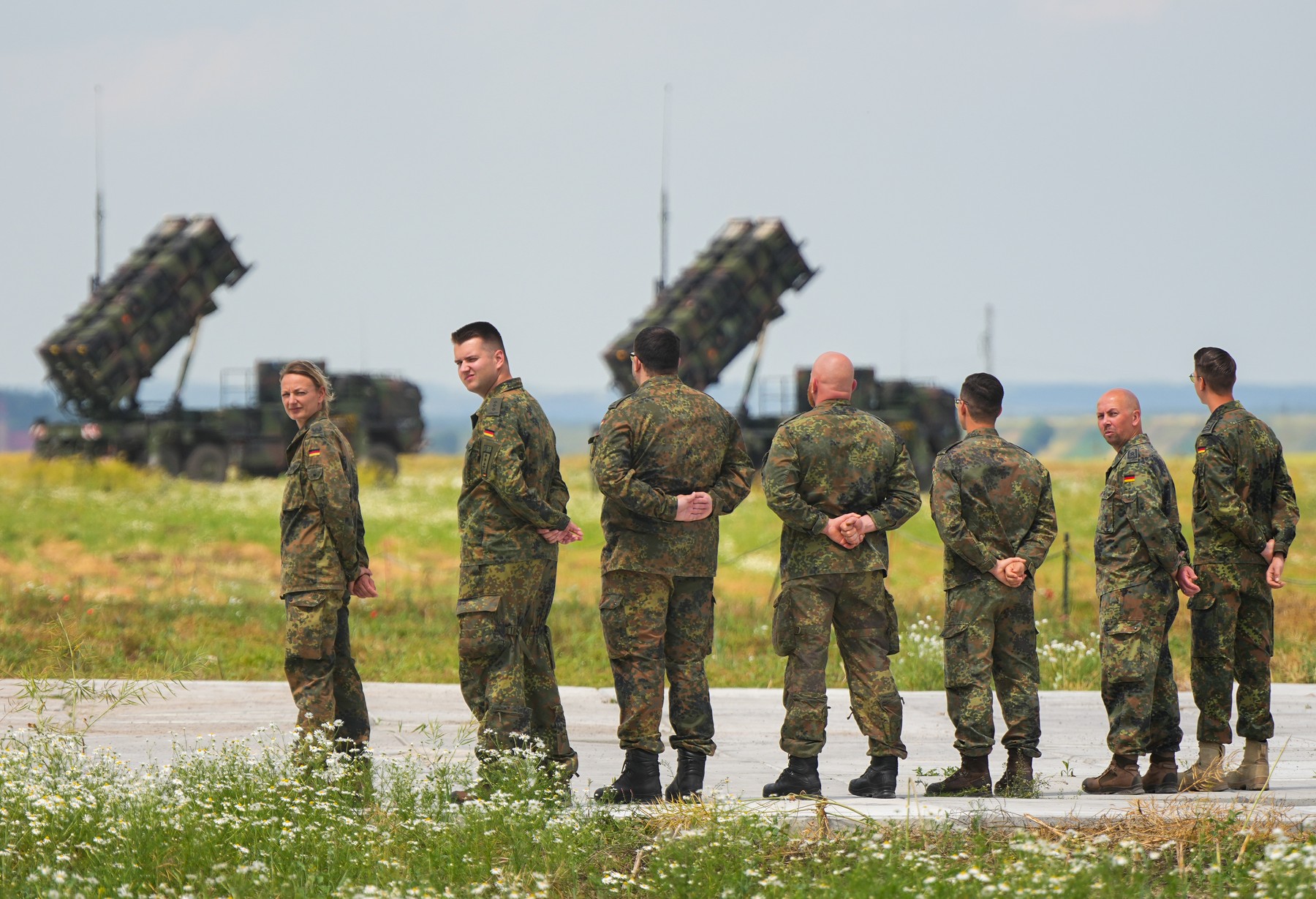 Soldati germani cu sisteme Patriot in fundalFoto: Soeren Stache / DPA / Profimedia