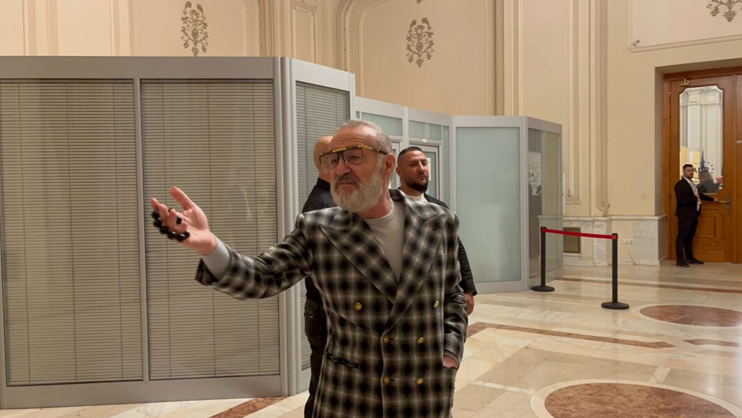 Gigi Becali a venit la Parlament pentru a discuta cu George Simion după înfrângerea suferită de liderul AUR la alegerile prezidențiale. Sursa foto: HotNews / David Leonard Bularca