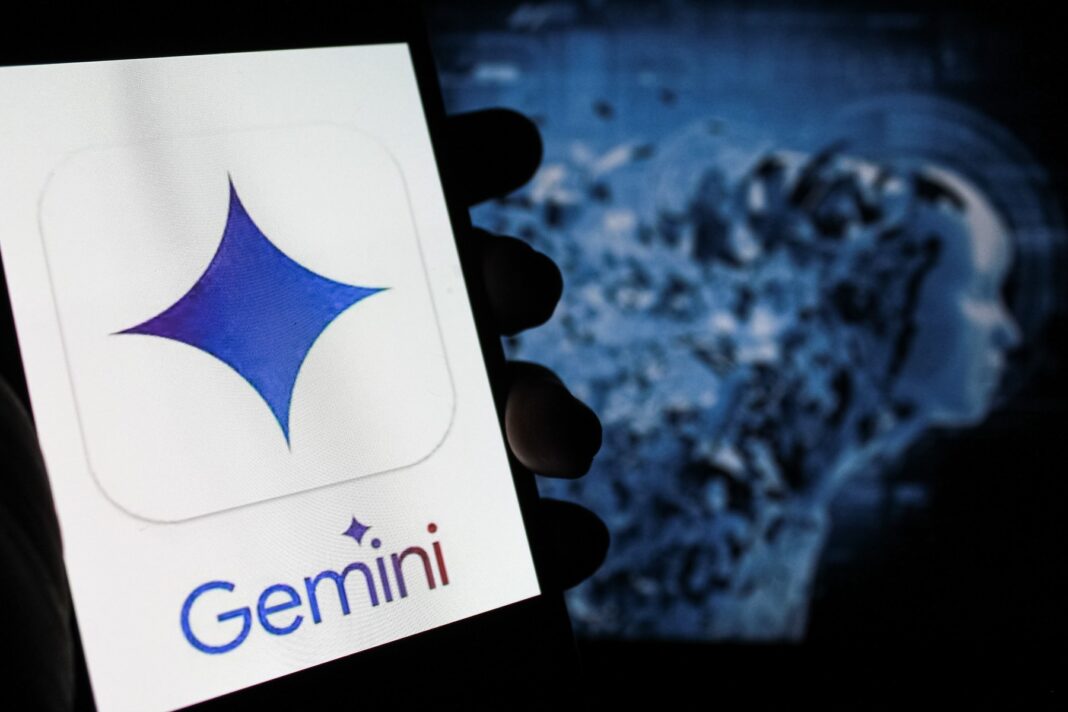 Ilustrație foto: logo-ul Google Gemini AI afișat pe smartphone.