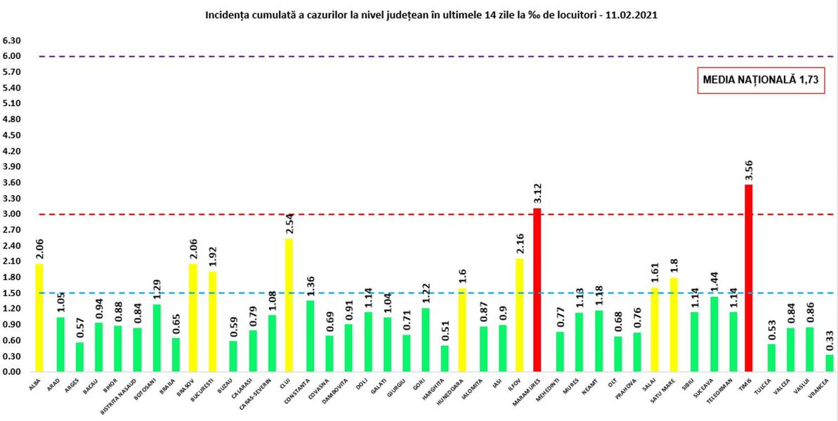 Media națională este de 1,73, față de 1,74 cu o zi înainte.
