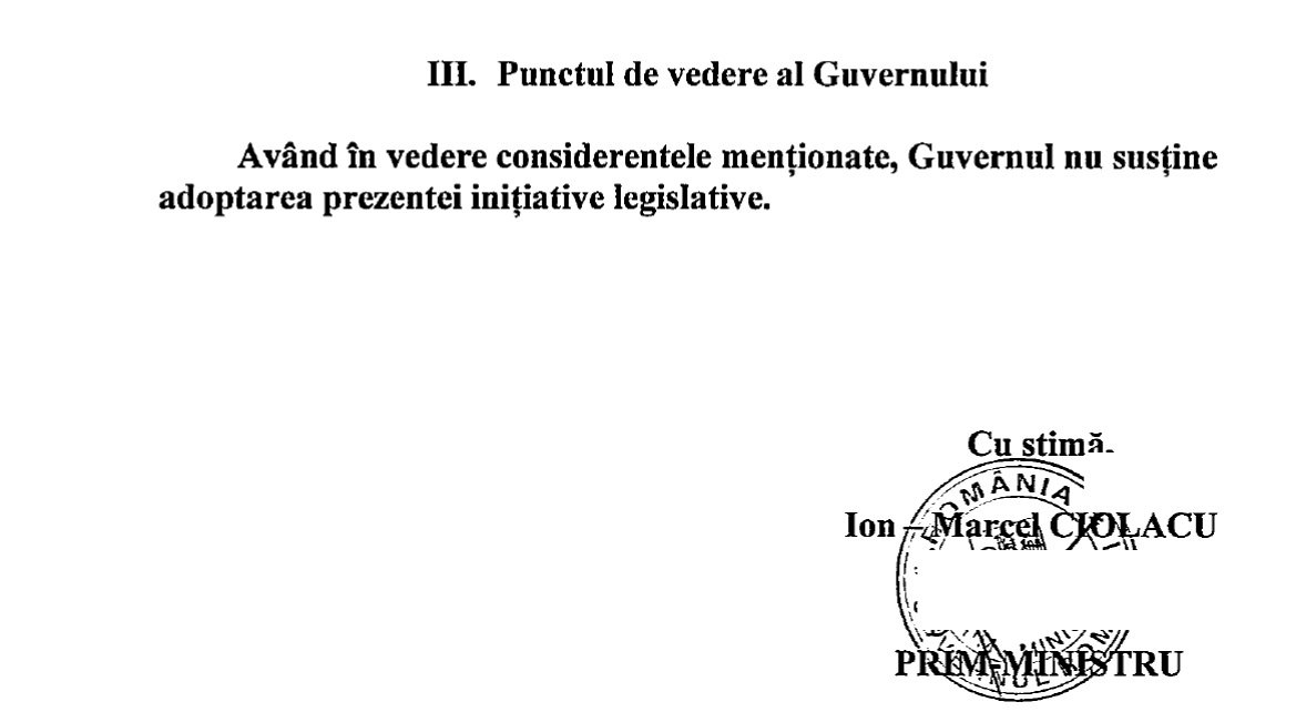 Cu mai puțin de două luni înainte de această declarație, Guvernul a dat aviz negativ pe proiectul parlamentarilor USR. Documentul semnat de premierul Ciolacu argumentează că „există o linie foarte fină de demarcație între obligația medicului de a nu trimite pacientul în privat și dreptul pacientului de a beneficia de servicii medicale optime”.