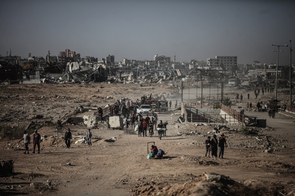 În toată Fâșia Gaza, echipele de salvare continuă să scormonească printre dărâmături în căutarea celor morți, după retragerea trupelor israeliene în spatele liniilor convenite, în timp ce sute de mii de palestinieni se întorc în nordul teritoriului, adesea pentru a găsi doar ruine.