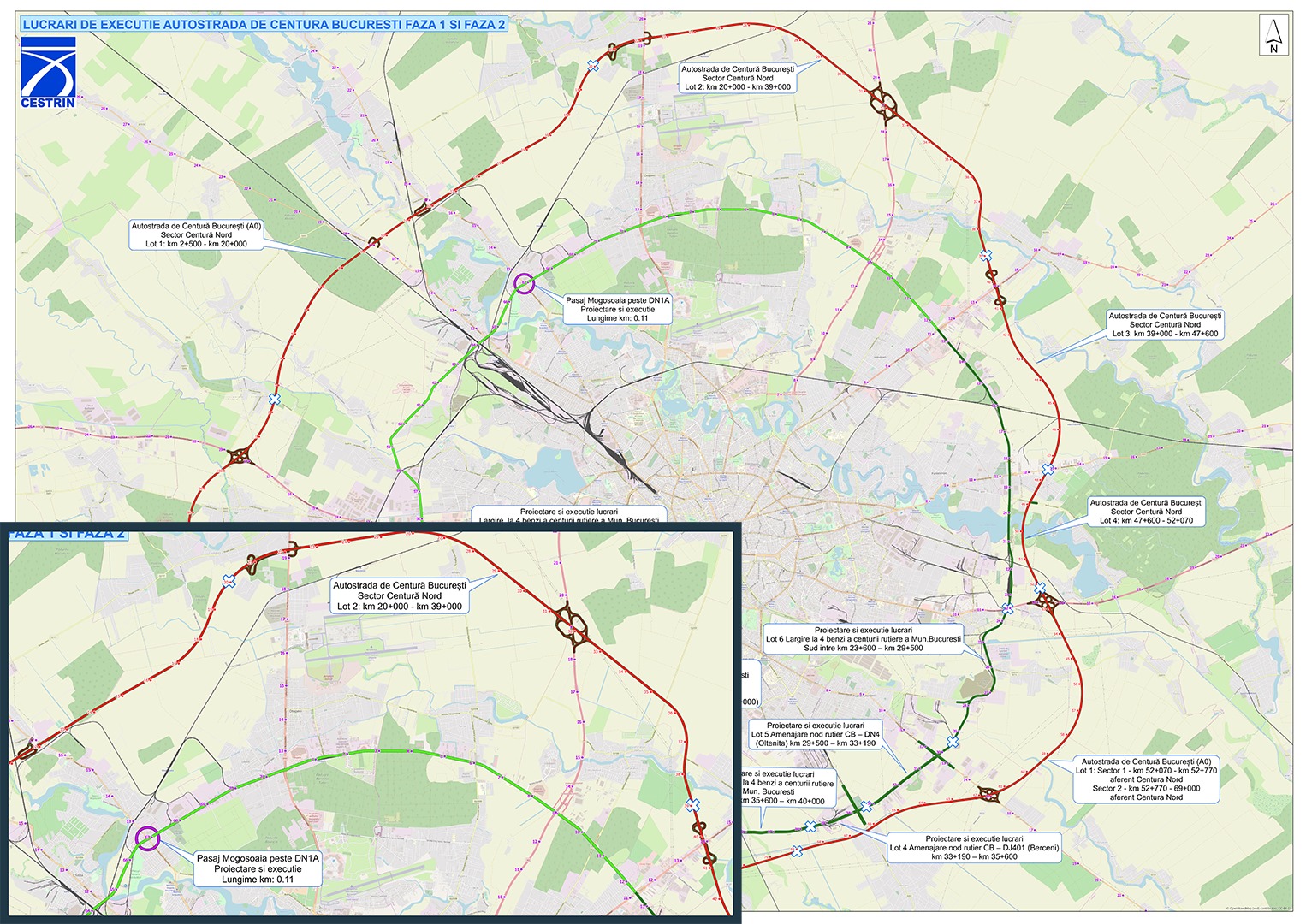 Autostrada A0 și lotul 2 de pe A0 Nord (click pentru mărire):