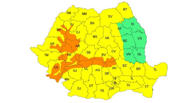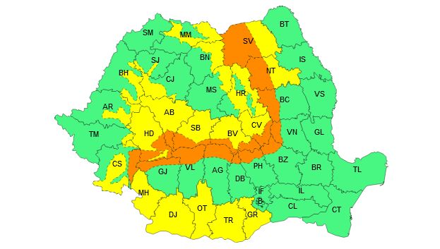 O avertizare meteorologică cod galben este valabilă în intervalul 23 decembrie, ora 10 – 24 decembrie, ora 03, fiind prognozate intensificări ale vântului în cea mai mare parte a ţării, viscol şi ninsori moderate cantitativ la munte, ninsori viscolite în Maramureş şi Transilvania.