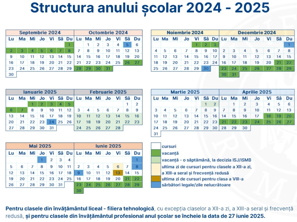 Mai jos prezentăm graficul cu calendarul anului școlar 2024-2025
