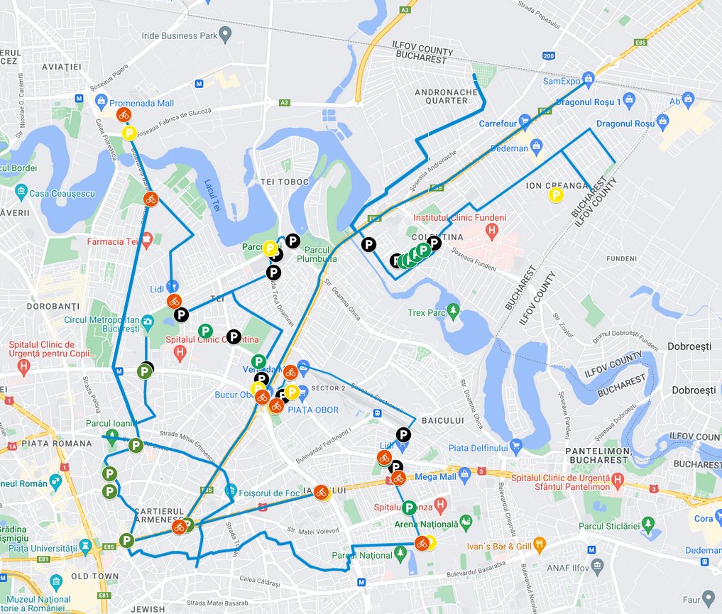 - Traseu 3 (2.10 km): Parcul Circului – Blvd. Ghica Tei – Parcul Tei – Parcul Plumbuita