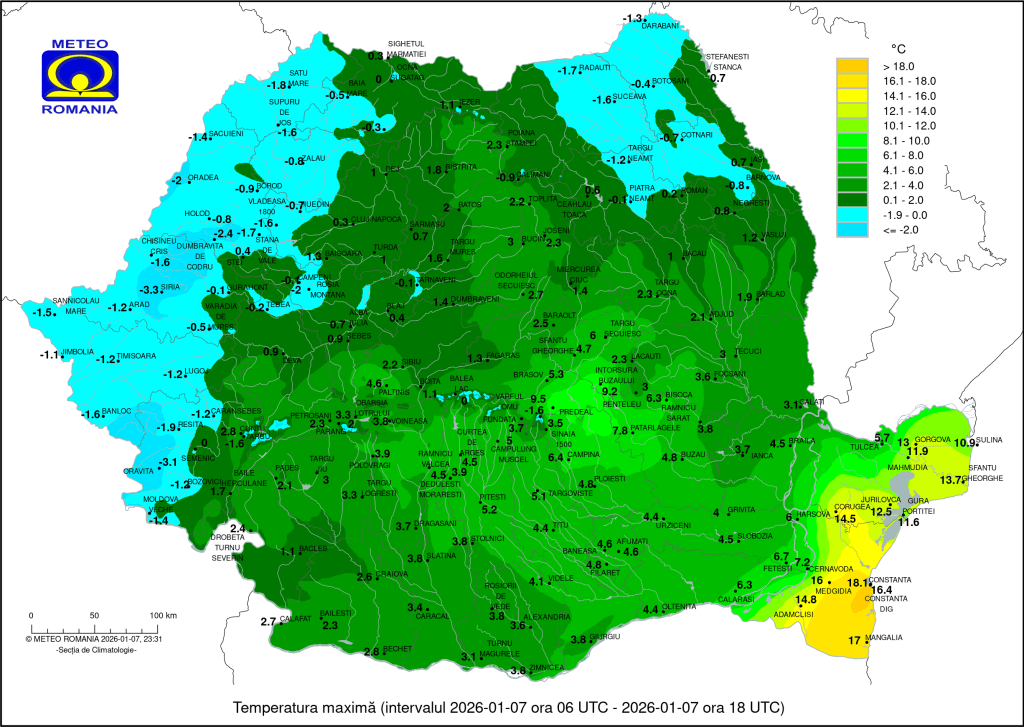Miercuri au fost diferențe foarte mari de temperatură în țară: maxima a fost de +18,1 C la Constanța, în timp ce la Oravița maxima a fost de numai -3,1 C, conform hărții ANM.