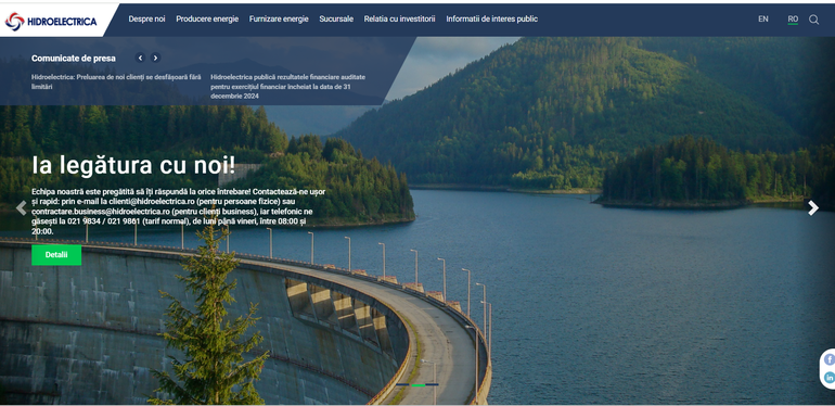 ″Hidroelectrica deține un site de prezentare realizat în anul 2018 care nu mai dispune de mentenanță de la producător și care nu mai corespunde necesităților de comunicare și interacțiune cu clienții externi ai companiei″, se arată în documentația de atribuire a unei licitații lansate recent.