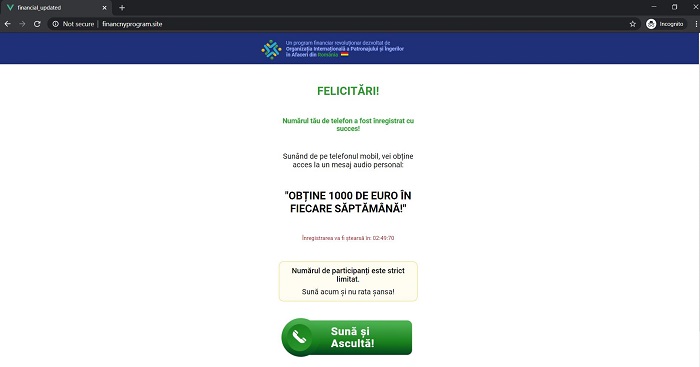 Ultimul pas, unul vital pentru succesul schemei de fraudare, este apelarea unui număr de telefon prin indicarea apăsării unui buton (sună și ascultă). Practic, în momentul în care se apasă butonul sună și ascultă, se efectuează un apel la un număr cu suprataxă și nu este în niciun caz vorba despre un mesaj vocal. Aceste linii telefonice cu suprataxă pot fi închiriate de persoane rău intenționate, iar astfel de apeluri pot ajunge să coste utilizatorii neatenți de la 5 până la 100 euro, în funcție de limita stabilită de operatorul de telefonie mobilă cu care aveți contract. În cazul în care nu ați reținut, pentru a deveni ‘eligibil’ în acest program unde poți câștiga 1000 de euro, potențiala victimă trebuie să asculte acel mesaj vocal de 30 de minute.