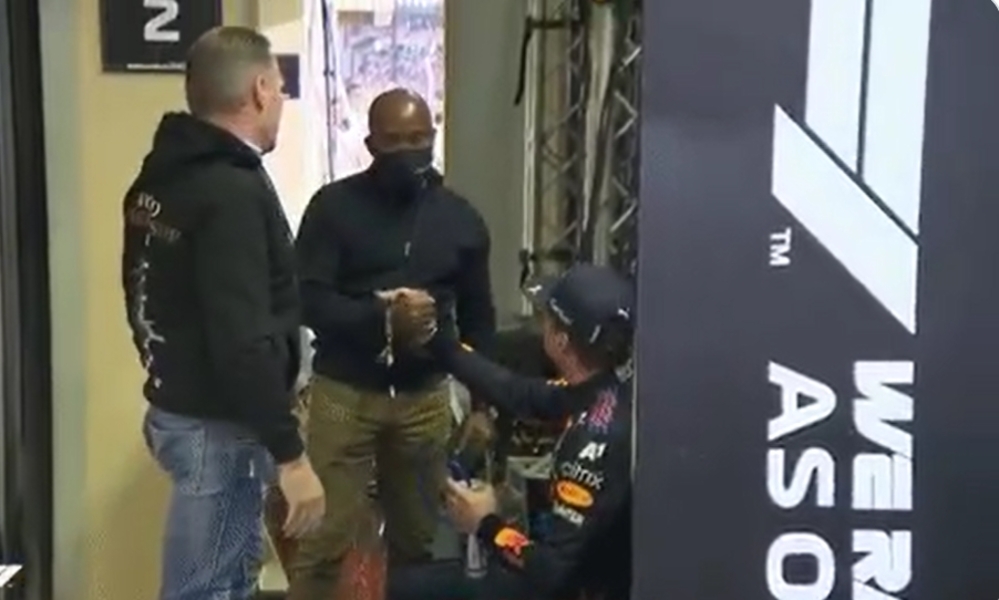 La finalul cursei de pe Yas Marina Circuit, Anthony (tatăl lui Lewis Hamilton) s-a dus imediat și i-a felicitat pe Max și Jos Verstappen.