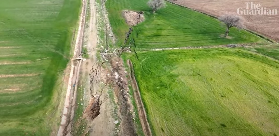 Imagini filmate cu drona în sudul Turciei arată o fisură care taie câmpuri, drumuri, cursuri de apă şi versanţi, provocată de cutremurul masiv care a lovit regiunea la începutul săptămânii, relatează The Guardian.
