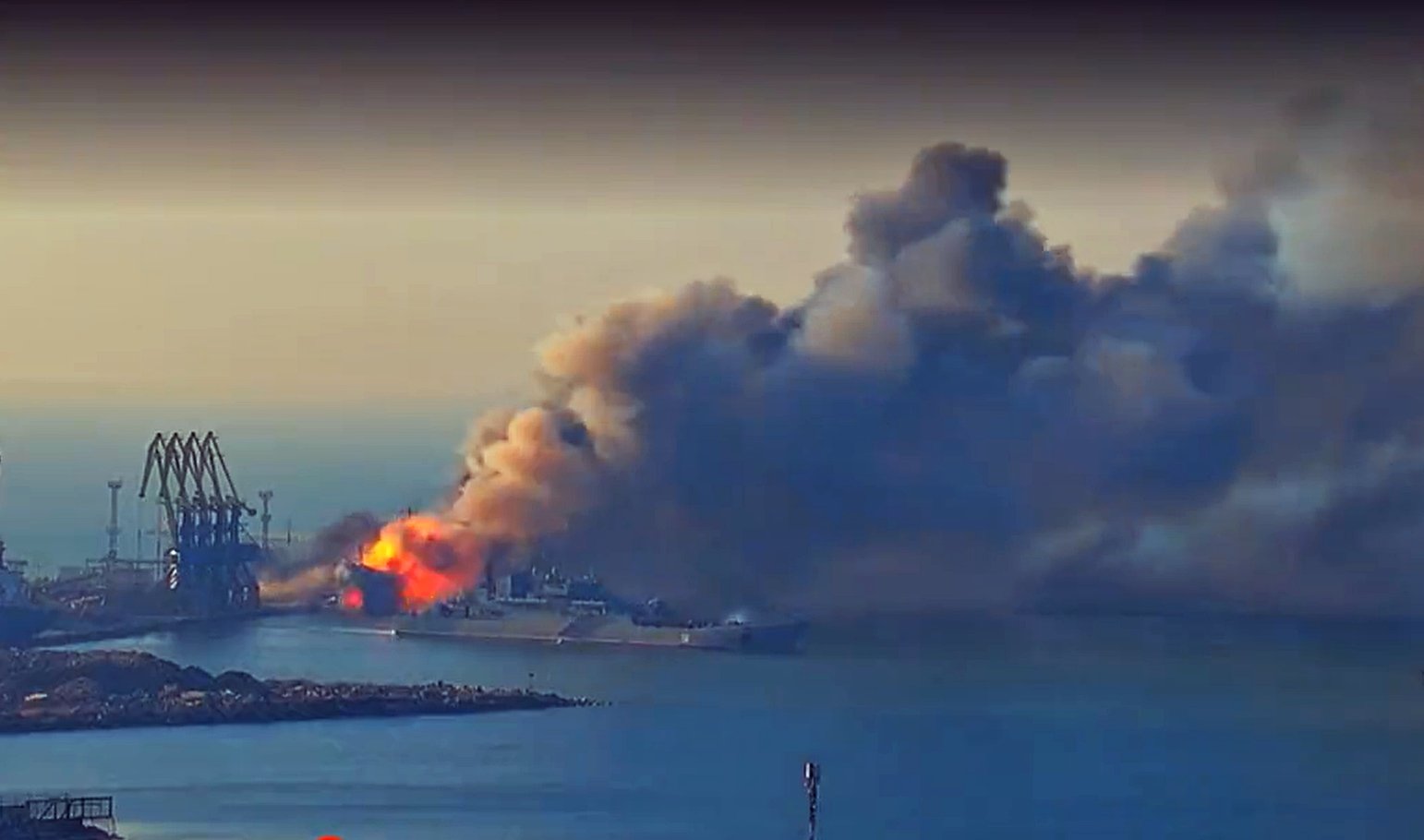 2 x Ropucha-class LSTs are about 12nm SW of the harbor. No smoke visible, so the fire on one of them has likely been extinguished.