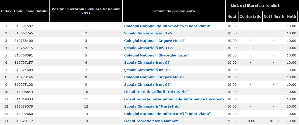 La proba de Limba şi literatura română, 10.993 de candidaţi (93,03%) au încheiat examenul cu note mai mari sau egale cu 5 (cinci), iar dintre aceştia 55 de candidaţi au obţinut nota 10, mai arată ISMB.