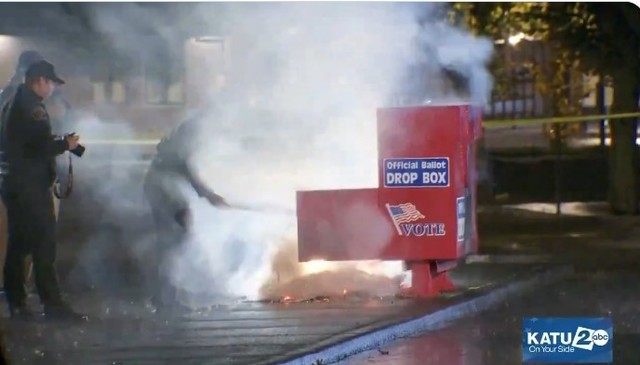 Imaginile filmate luni de postul de ştiri KATU din Vancouver au arătat fum ieşind dintr-o urnă de vot din acest oraş, iar mai multe buletine de vot păreau să fie în flăcări. Oficialii locali au spus că alegătorii care şi-au pus buletinele de vot în urnă sâmbătă după ora locală 15:30 ar trebui să contacteze autorităţile electorale.
