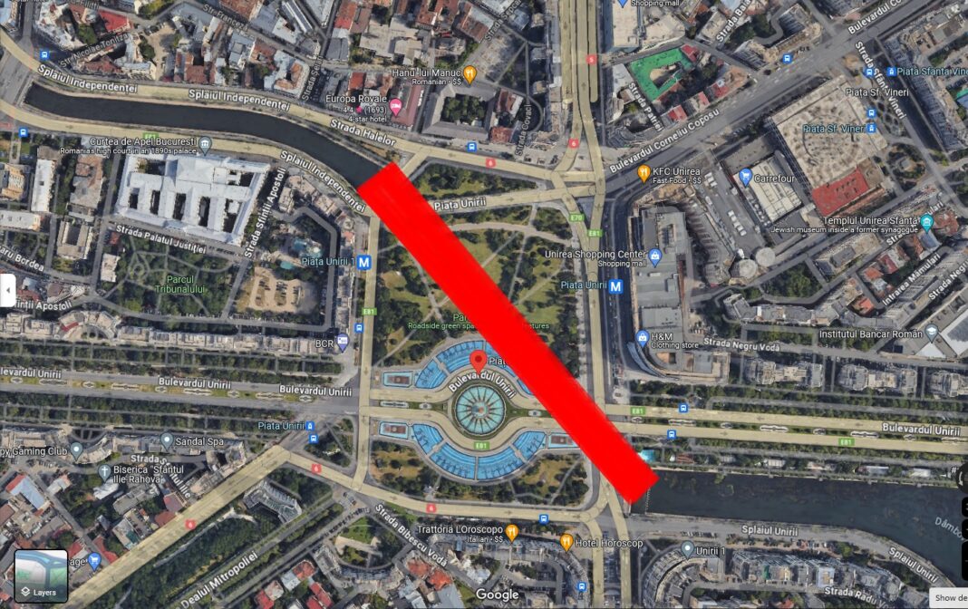 - De pe Calea Victoriei – urmaţi traseul: Naţiunile Unite – Palatul Parlamentului – Bulevardul Unirii.