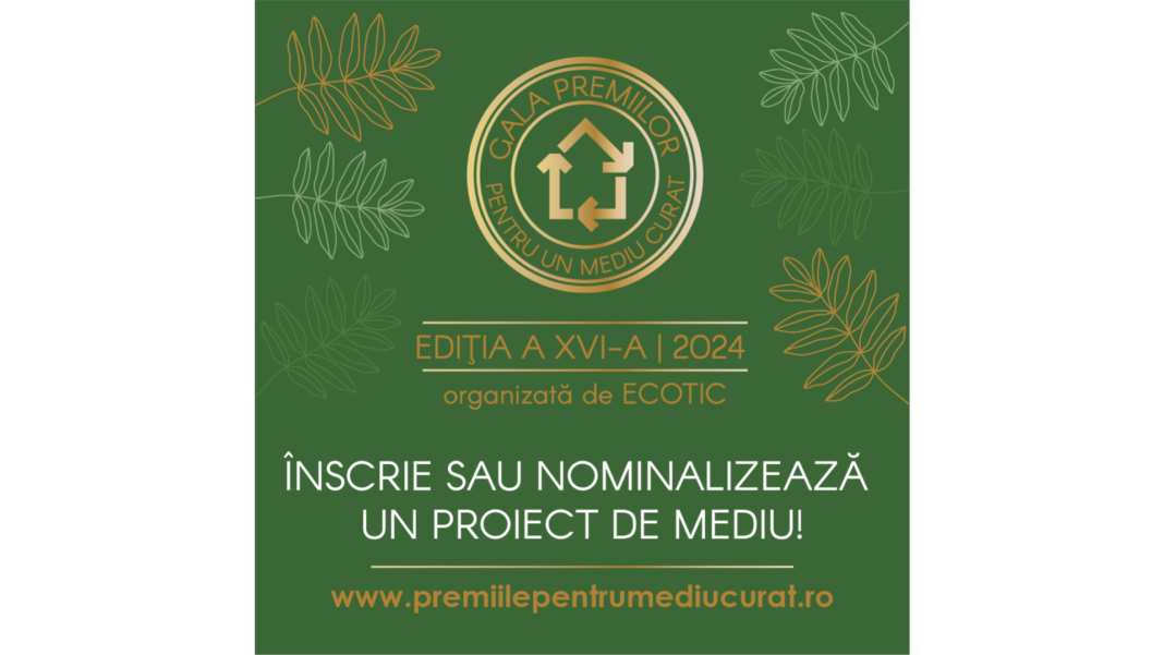 Astăzi, 3 octombrie, este lansată cea de-a XVI-a ediție a concursului Gala Premiilor pentru un Mediu Curat. Organizatorul, ECOTIC, în parteneriat cu Ministerul Mediului, Apelor și Pădurilor, încurajează autoritățile publice locale, companiile, instituțiile de învățământ și ONG-urile, să își înscrie proiectele cu impact pozitiv asupra mediului înconjurător, conservării resurselor naturale, prevenirea risipei și nu numai.