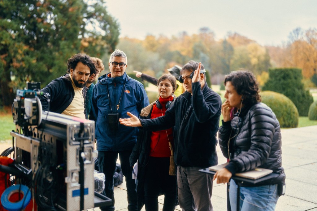 Cristian Mungiu pe platoul de filmare pentru „Jaful Secolului”. Sursa: pagina de Facebook a filmului