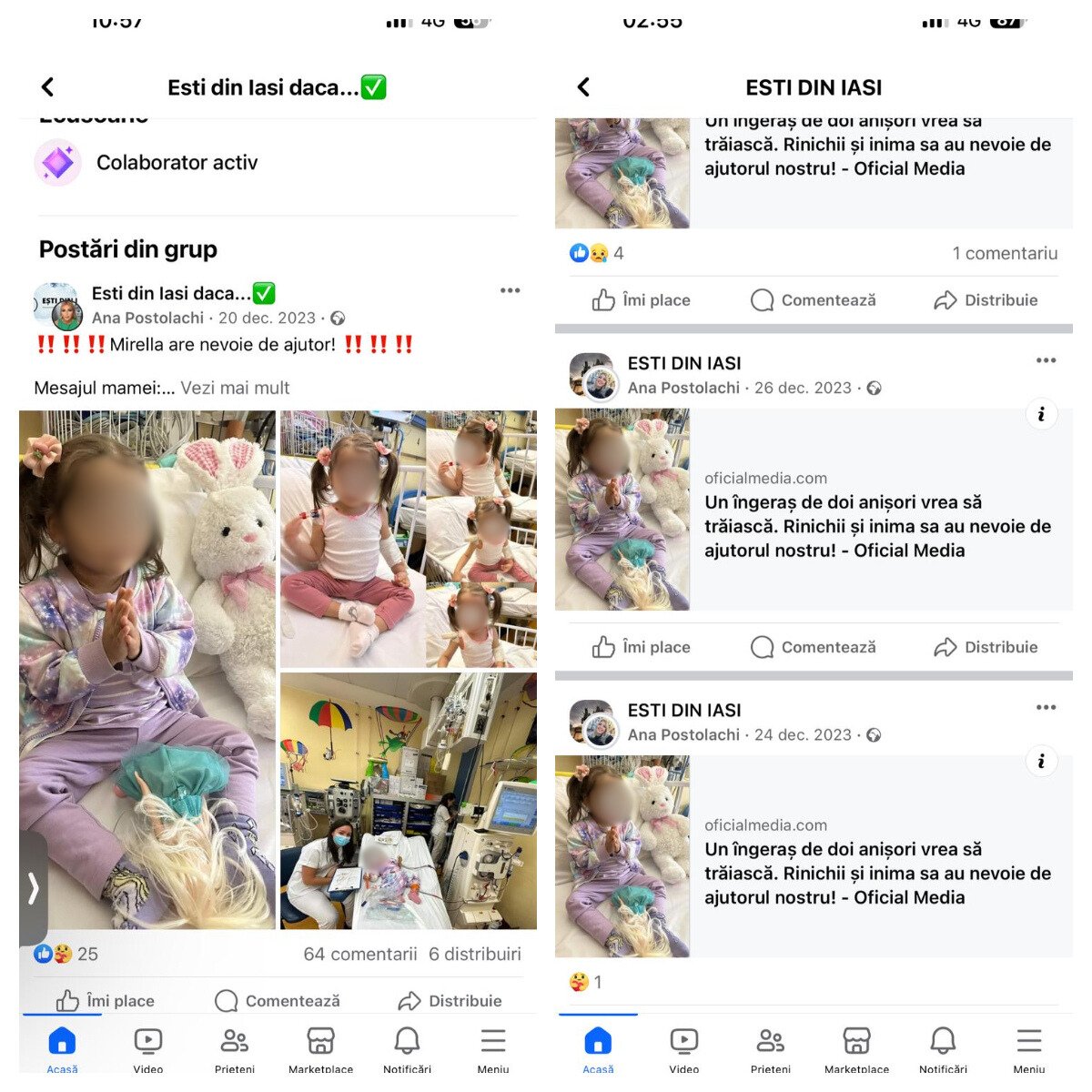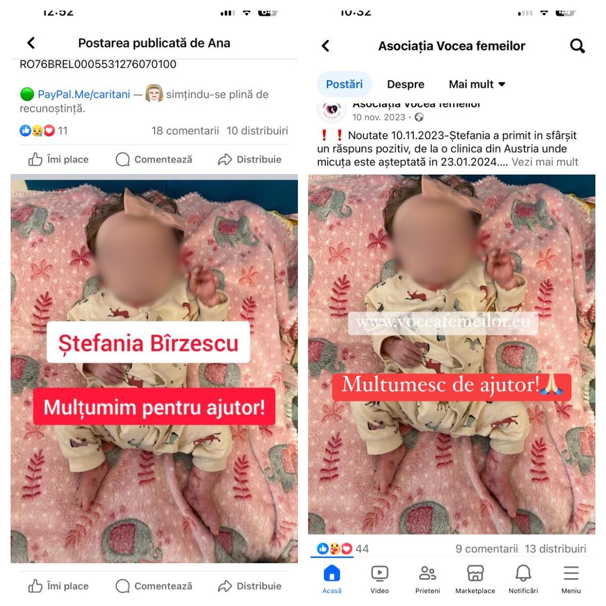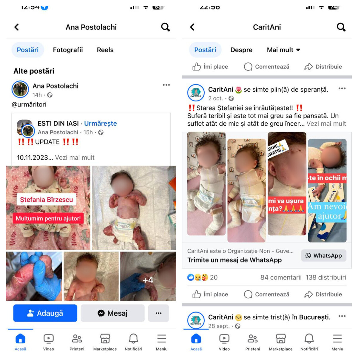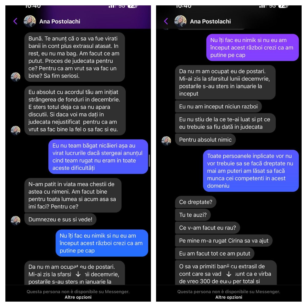„Am avut discuții cu reprezentanții spitalului din Italia, că au văzut că cerem bani și noi avem asigurare. Nu înțelegeam ce se întâmplă, eram într-o stare deplorabilă. Am rugat-o: Ana, șterge postările, că îmi zic oamenii că sunt escroacă. Zicea că le șterge, dar tot acolo erau. Toți cunoscuții mei scriau în comentarii, într-un minut-două, cineva le ștergea. Îi scriau în privat, îi bloca”, povestește mama.