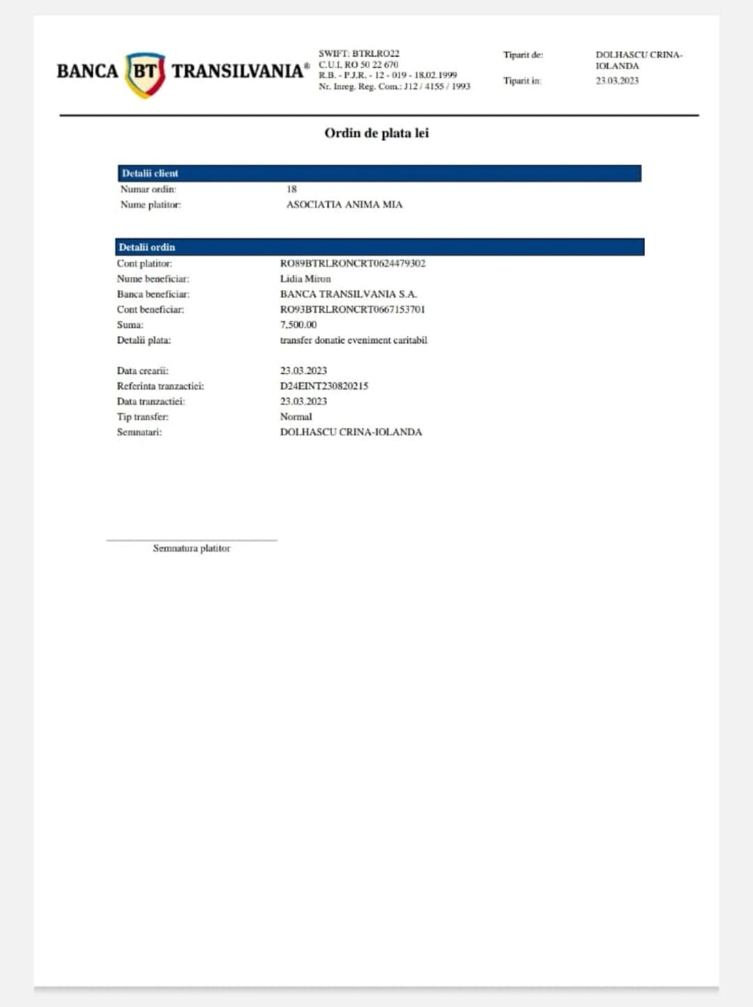 Așa a descoperit că, după o licitație publică de tablouri organizată în luna martie, unde Anima Mia a strâns bani pentru copiii cu leucemie, cei 8.700 de lei pe care îi alocase unuia dintre ei, Ionuț Miron, nu au ajuns, de fapt, la copil.