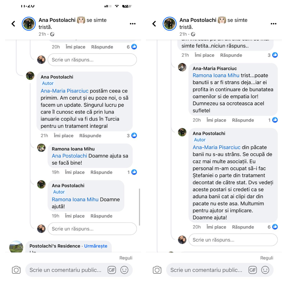 În comentarii, Ana Postolachi le spunea că fetița va ajunge în Turcia sau că ea însăși a făcut rost de tratamente decontate de stat