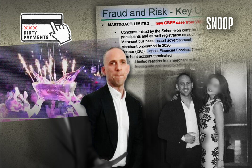 Cetățeanul elvețian David Azzato, 47 de ani, a jucat în România două roluri: personaj monden care a plătit 47.000 de euro pentru o șampanie și liderul din umbră al unei rețele de prostituție globale. El a rulat sume uriașe printr-una dintre cele mai mari companii de procesare a plăților din Europa, Worldline, dar și printr-o firmă autorizată de BNR, dezvăluie Snoop.ro în investigația „Dirty Payments/ Plăți murdare”, investigație jurnalistică publicată în colaborare cu de 21 de instituții media din lume.