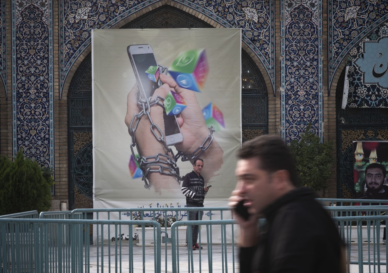 Afiș anti-rețele sociale în Teheran, IranFoto: Morteza Nikoubazl/NurPhoto / Shutterstock Editorial / Profimedia