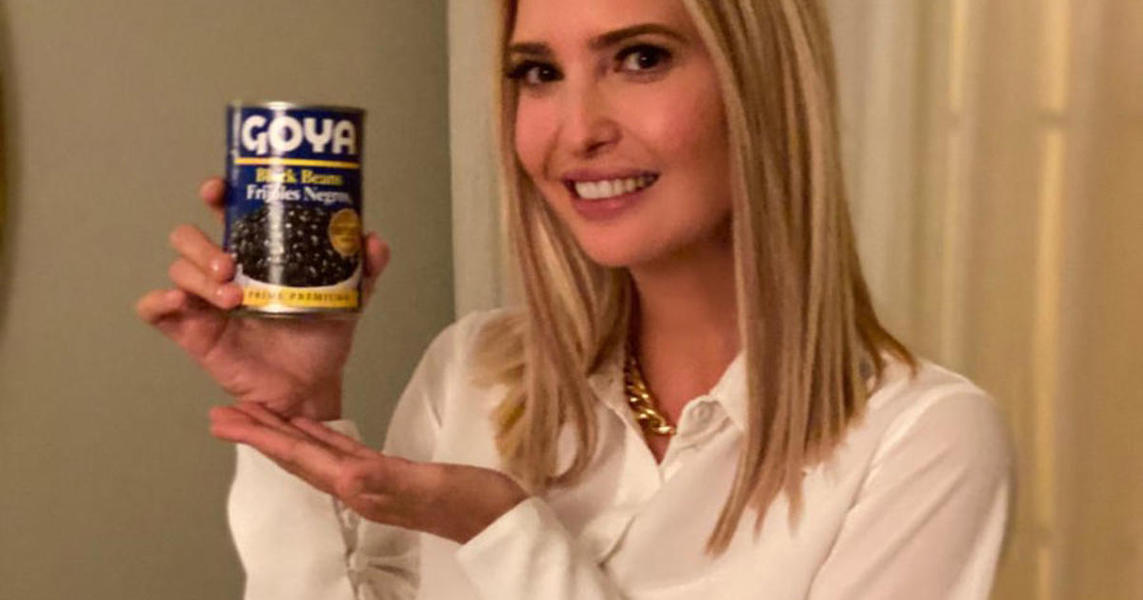 Totul aplecat de la o poză a lui Ivanka Trump, fiica și consiliera președintelui american, distribuită pe Twitter. În imagine, tânăra ține în mână o cutie de conservă de fasole neagră marca Goya, potrivit La Libre.