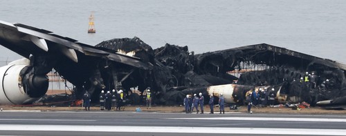 Epava avionului Japan Airlines care a luat foc pe aeroportul Haneda din TokyoFoto: Koki Kataoka / AP / Profimedia