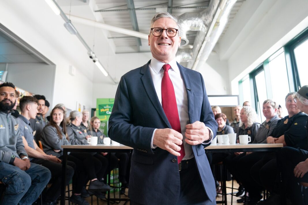 Liderul Partidului Laburist, Sir Keir Starmer, în timpul unei vizite la „Morrisons” din Swindon, în campanie electorală, 19 iunie 2024.