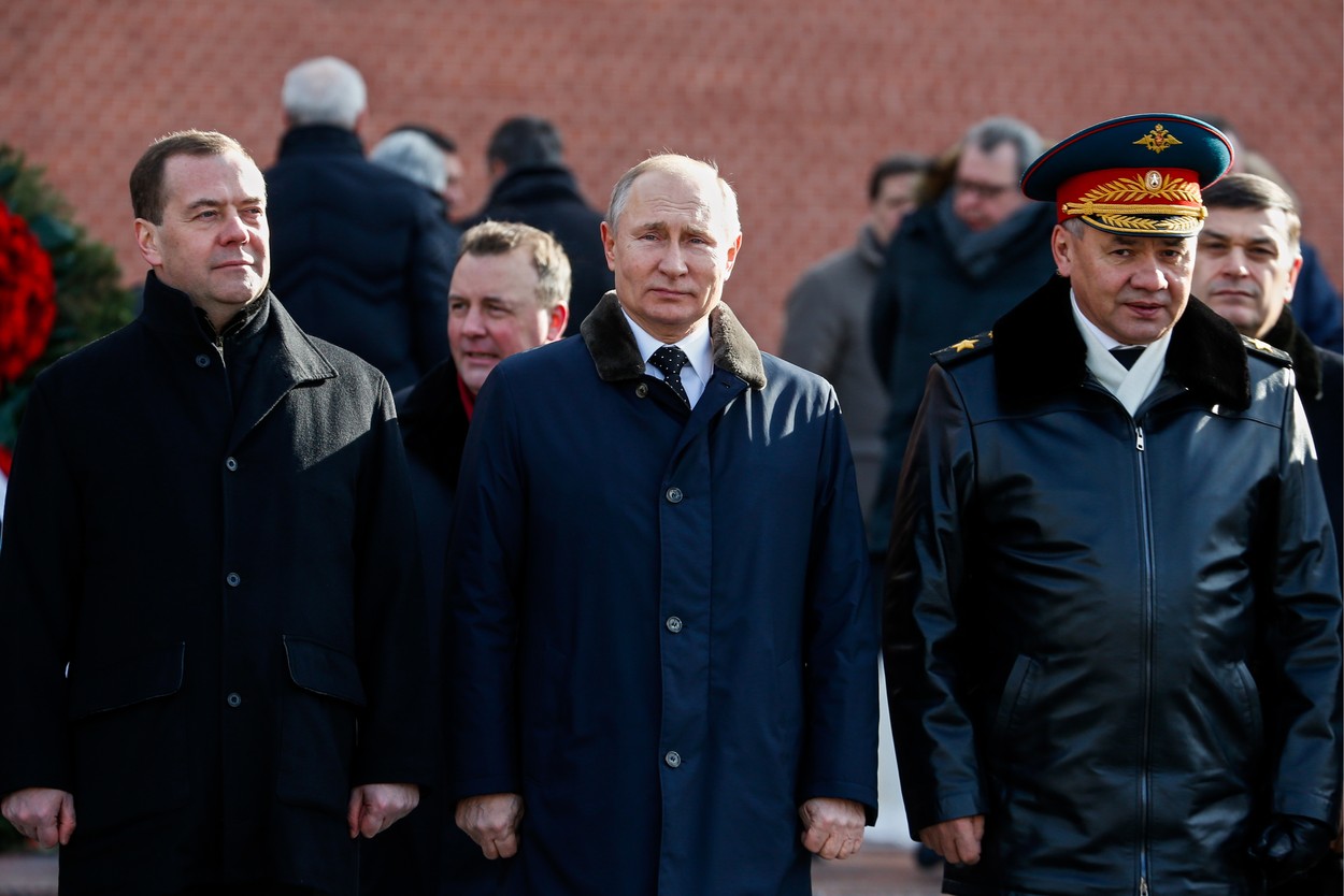 Serghei Soigu si Dmitri Medvedev, alaturi de presedintele Vladimir PutinFoto: Dmitry Astakhov / TASS / Profimedia
