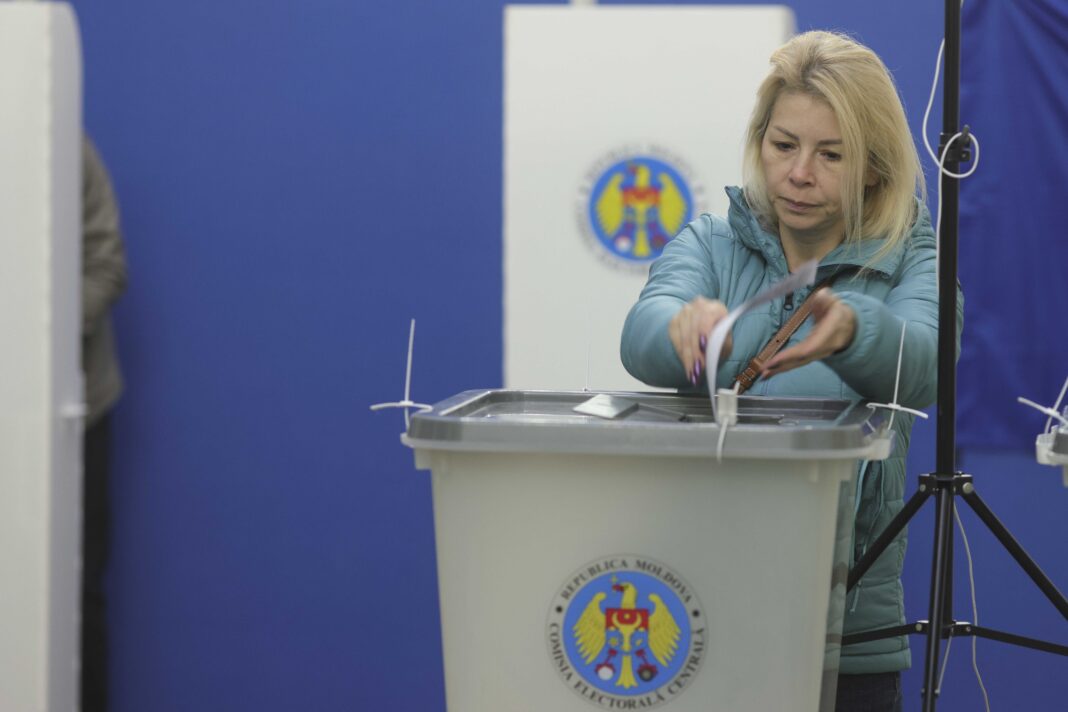 Cetateni din Republica Moldova voteaza in cadrul alegerilor prezidentiale si pentru referendumul de includere a intentiei de aderare a Moldovei la Uniunea Europeana in Constitutia Moldovei, in sectiile deschise in Bucuresti, 20 octombrie 2024. Inquam Photos / Octav Ganea