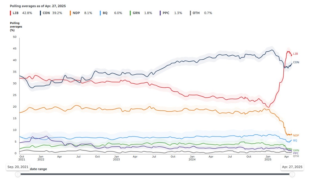 Rezultatul a confirmat o revenire spectaculoasă a liberalilor, care în ianuarie aveau nu mai puțin de 20 de puncte procentuale în urma conservatorilor, înainte ca Trudeau să anunțe că demisionează și Trump să înceapă să amenințe cu taxele vamale și cu anexarea Canadei.
