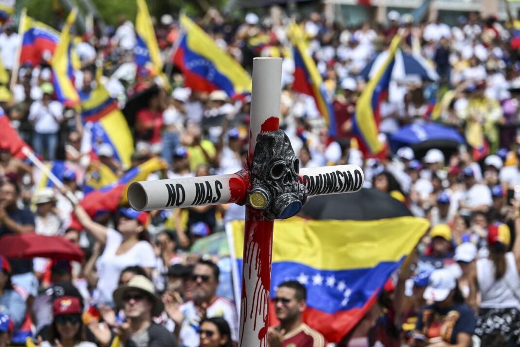 Manifestație împotriva procesului electoral din Venezuela și a președintelui Nicolas Maduro, în Miami, Florida, pe 3 august 2024.