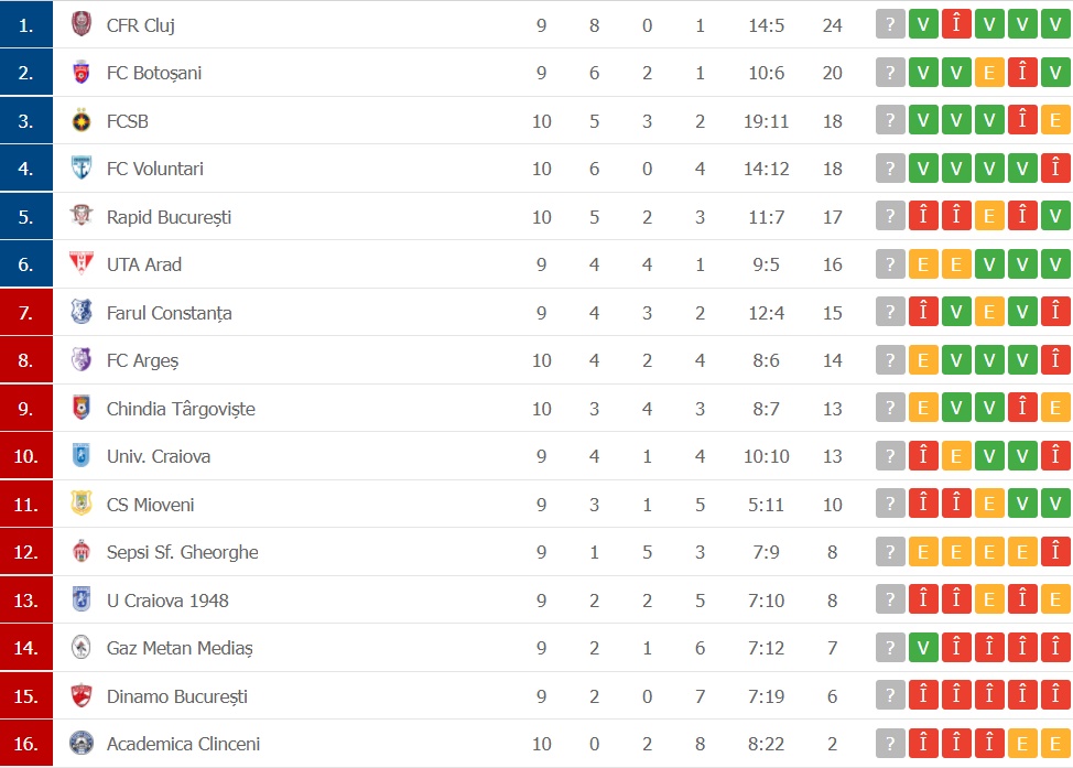 Clasamentul Ligii 1: