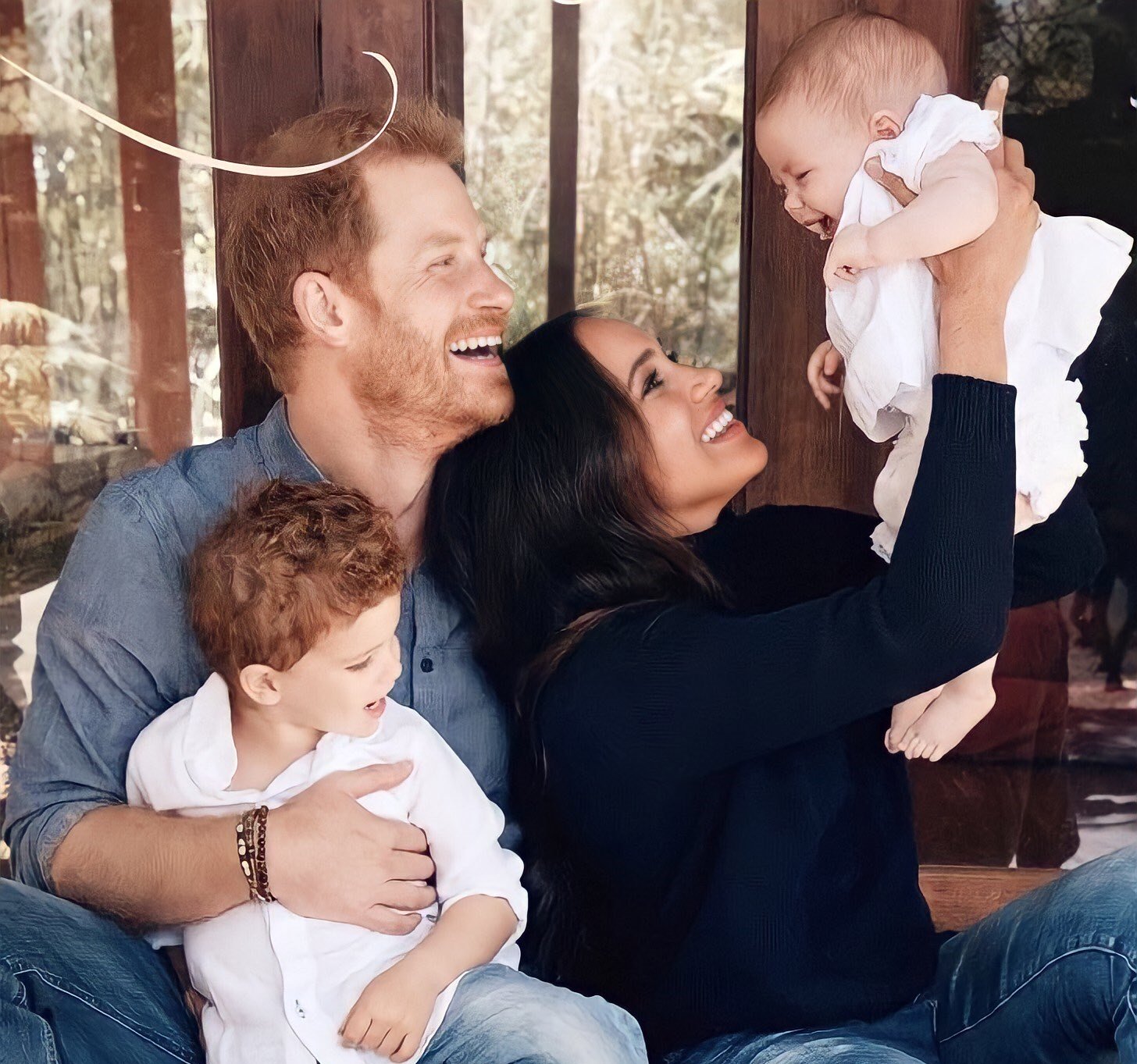 Harry, Meghan și cei doi copii, ​Archie și LilibetFoto: Captura Twitter
