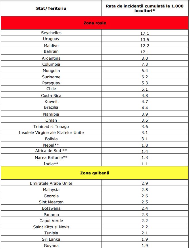 Lista integrală cu țările din zona verde, zona galbenă și zona roșie, aici.